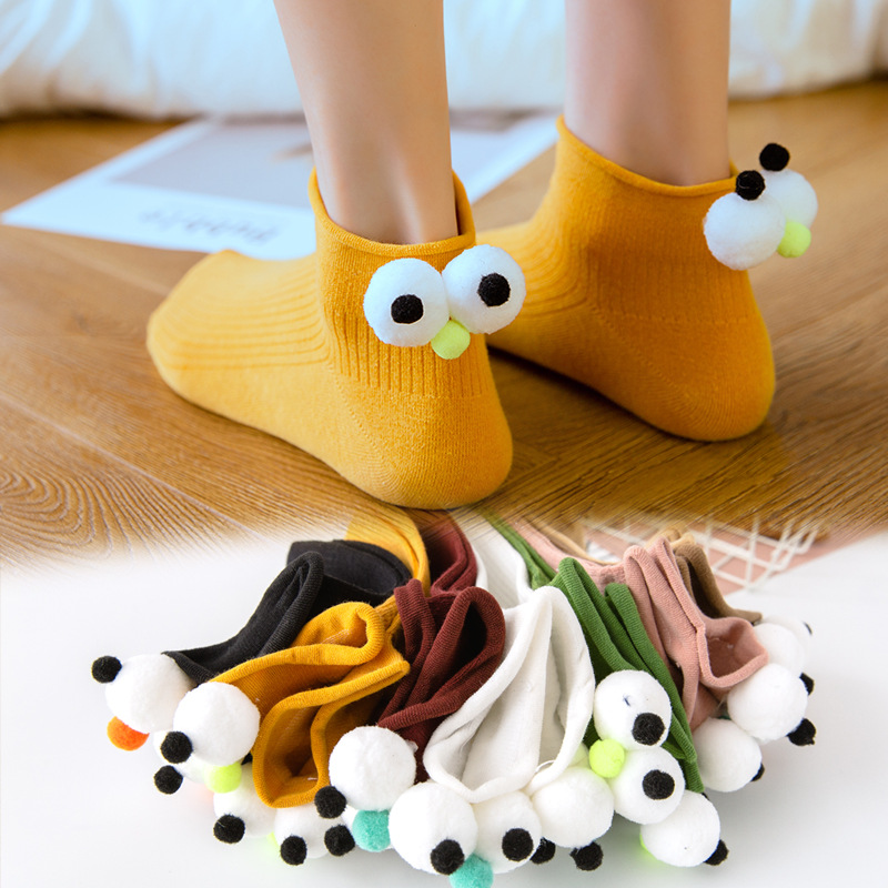 양말 여성용 면 양말 만화 크리 에이 티브 큰 눈 독특한 얕은 양말 한국 캔디 컬러 컬 유행 양말스토어 가기