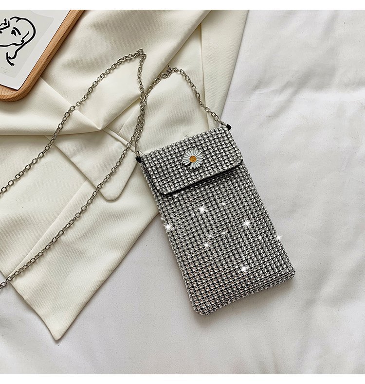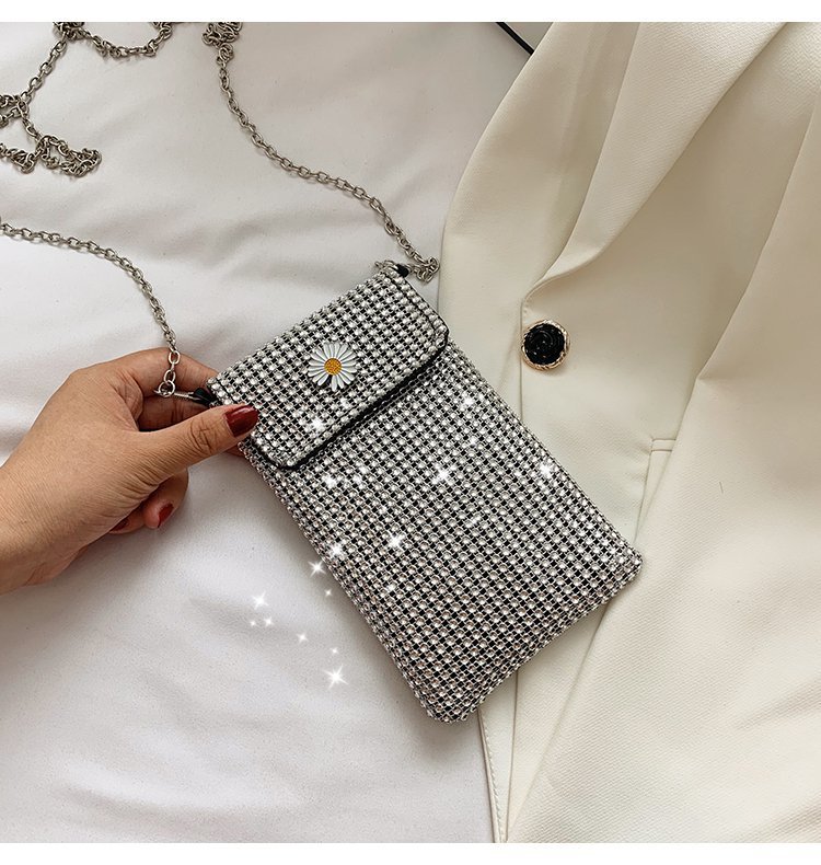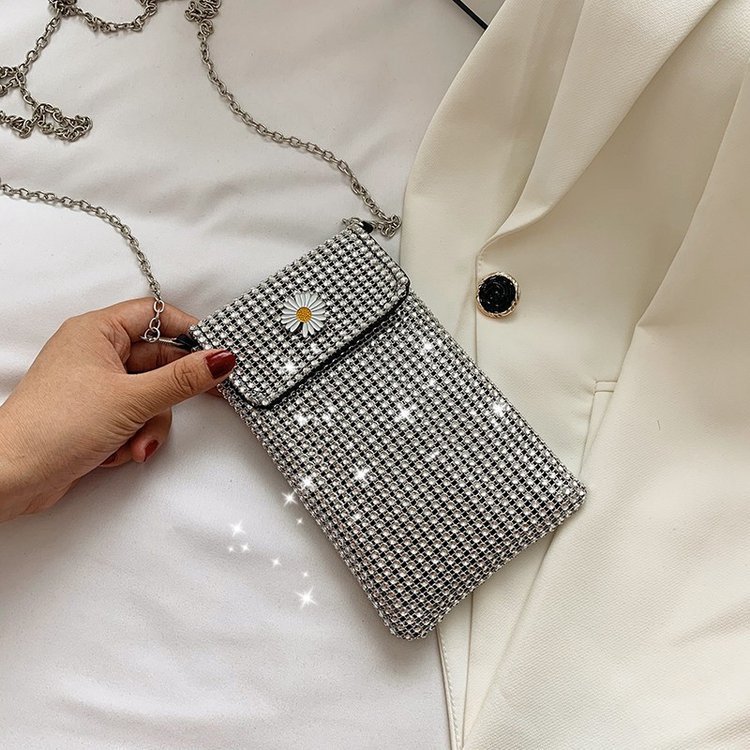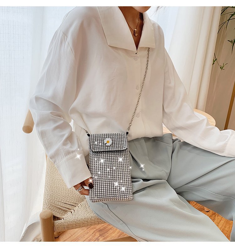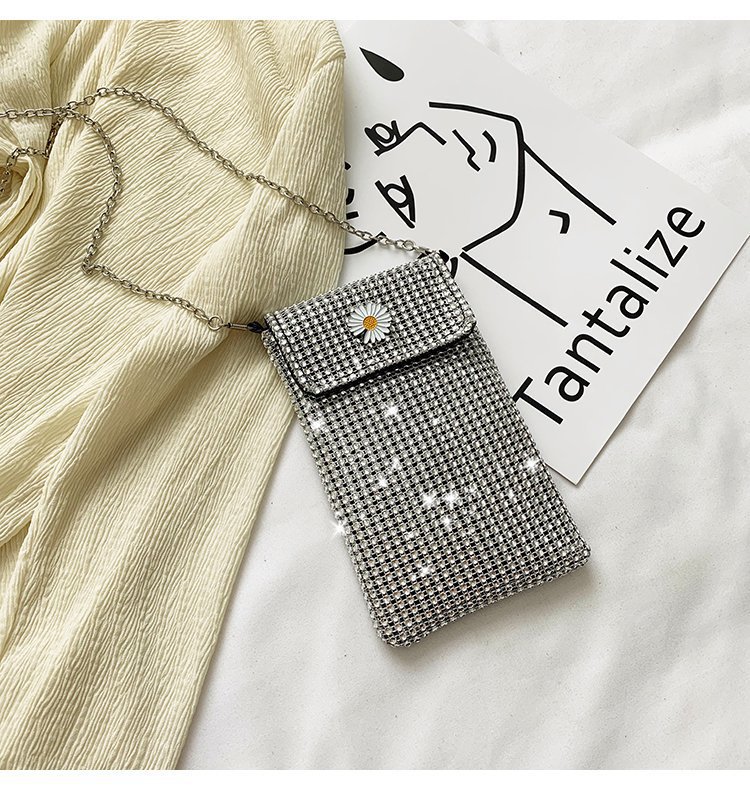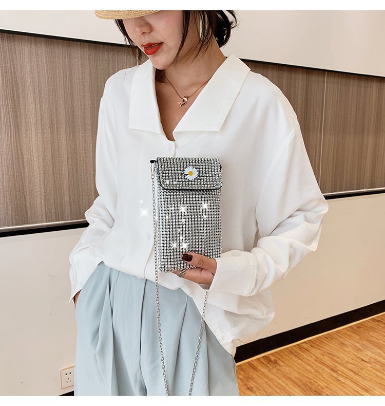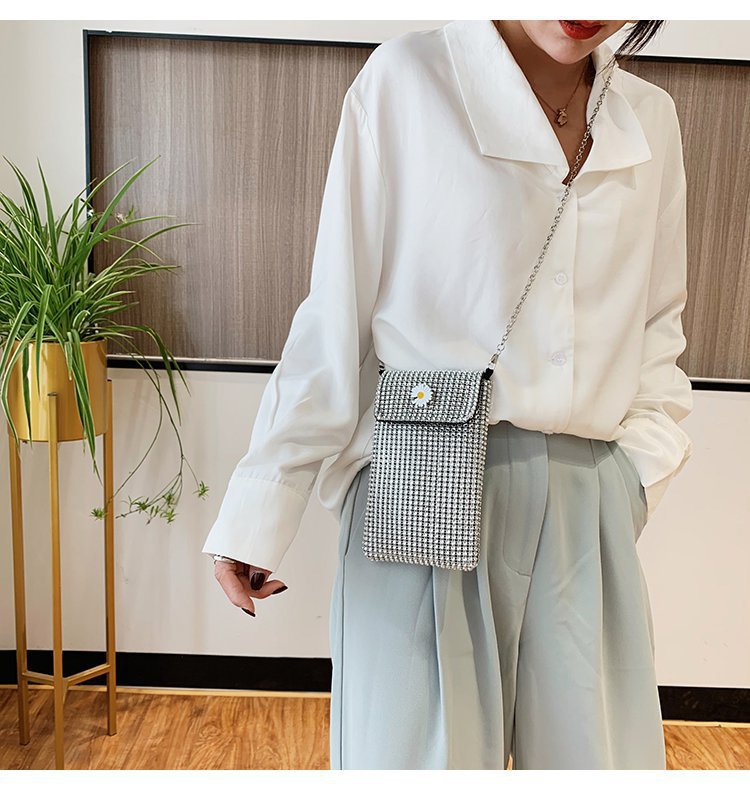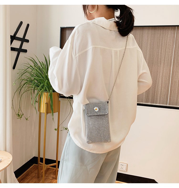 인터넷 연예인 같은 스타일 캐주얼 거리 전체 다이아몬드 반짝이 체인 어깨 크로스 바디 가방 유행 패션 빛나는 성격 휴대 전화 가방스토어 가기