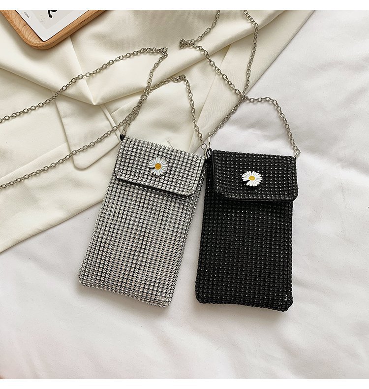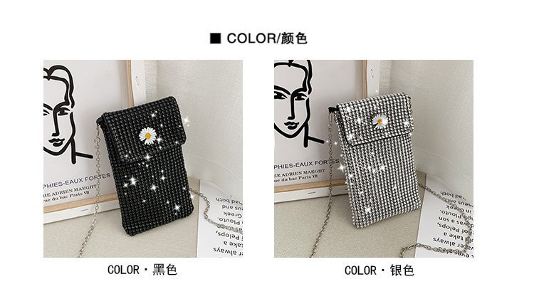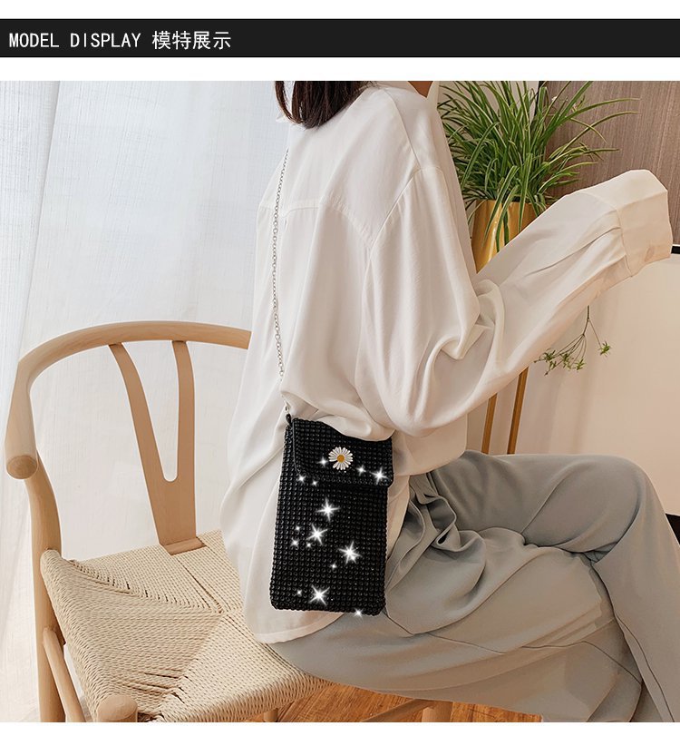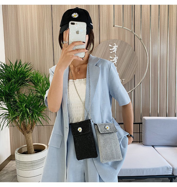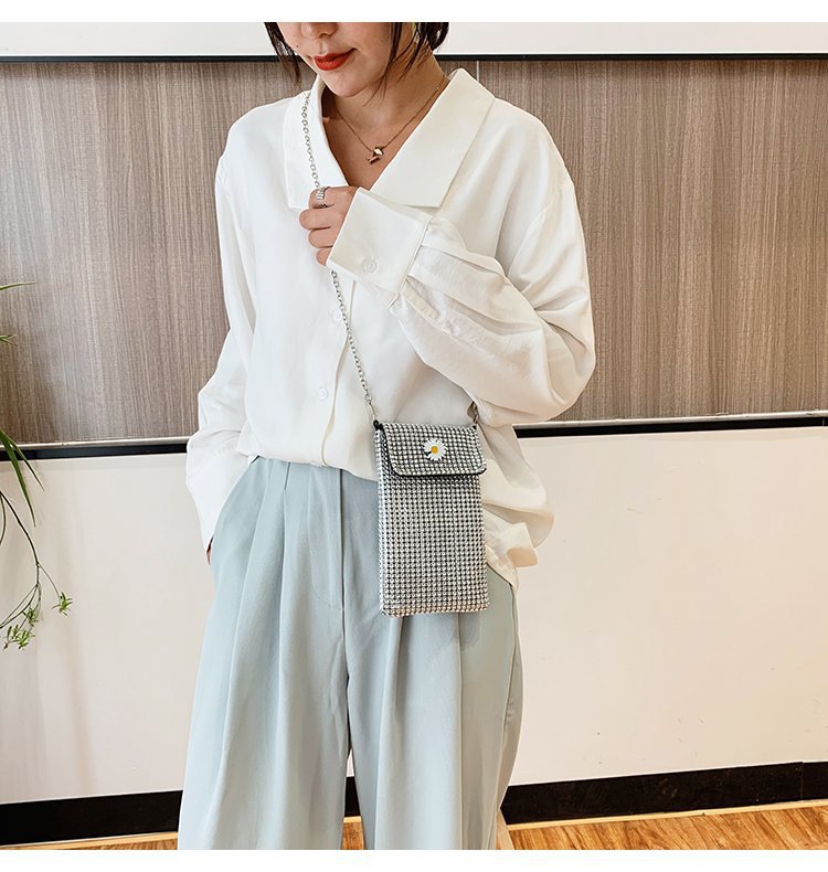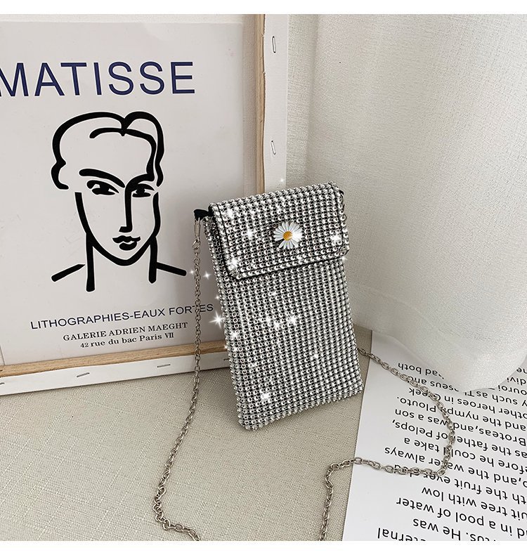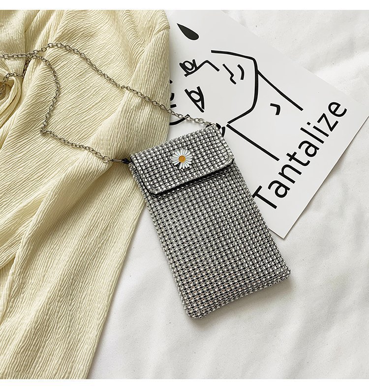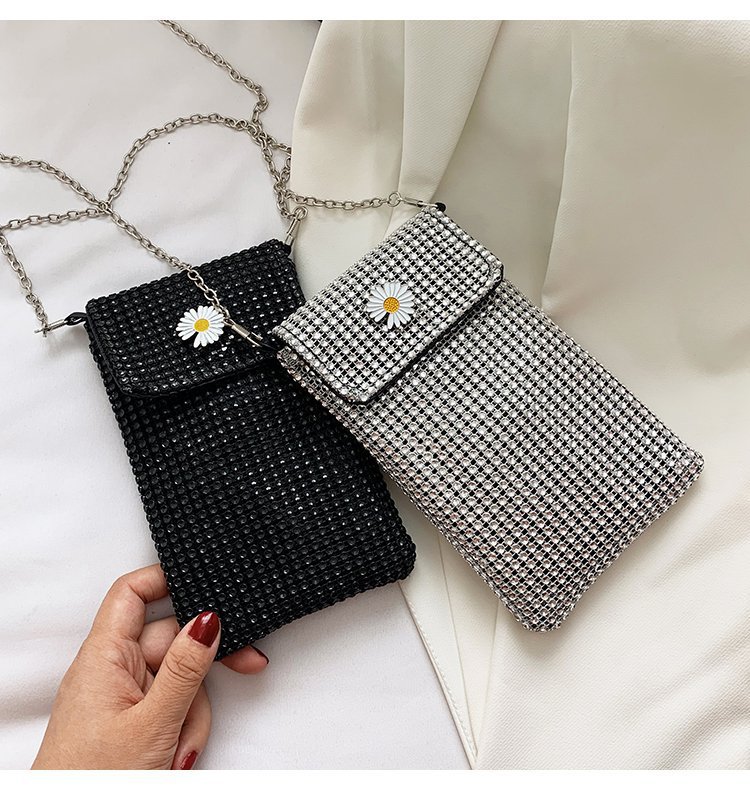 인터넷 연예인 같은 스타일 캐주얼 거리 전체 다이아몬드 반짝이 체인 어깨 크로스 바디 가방 유행 패션 빛나는 성격 휴대 전화 가방스토어 가기