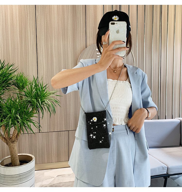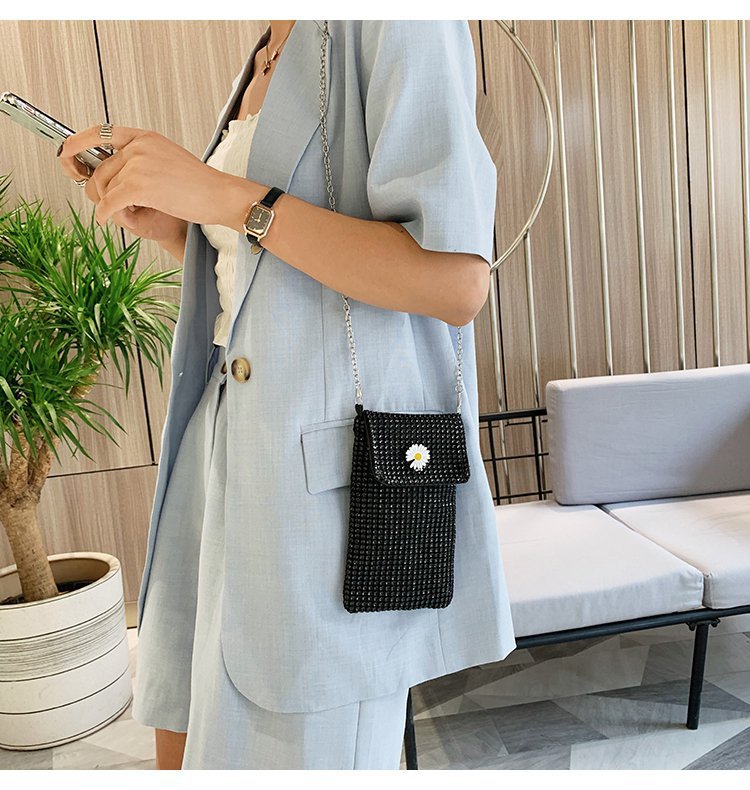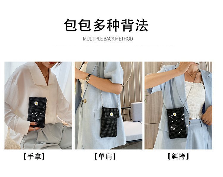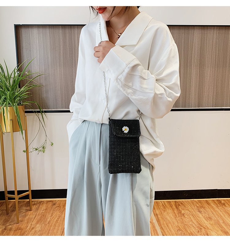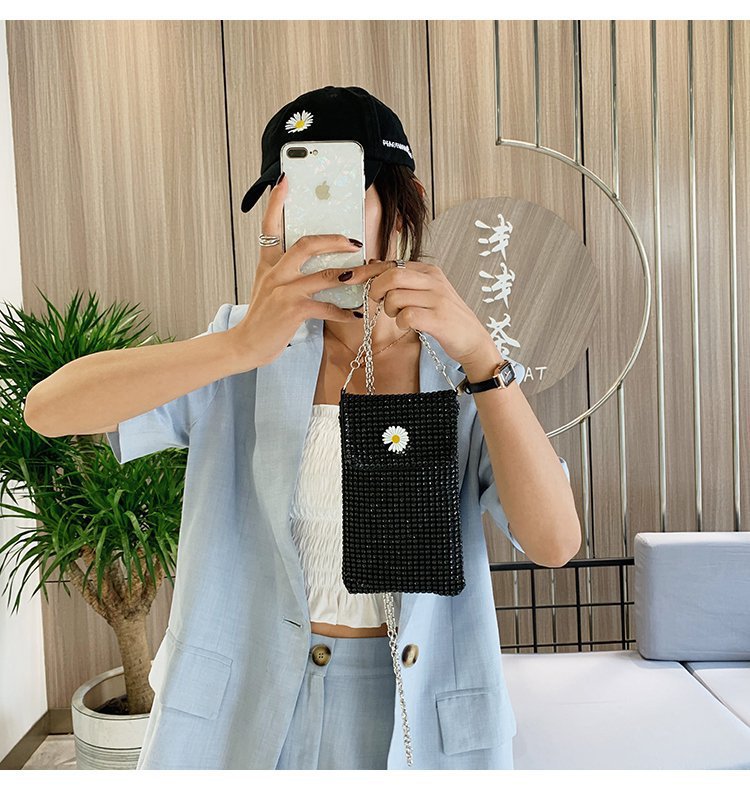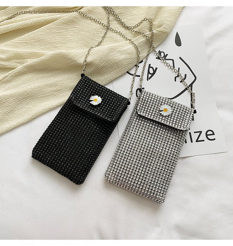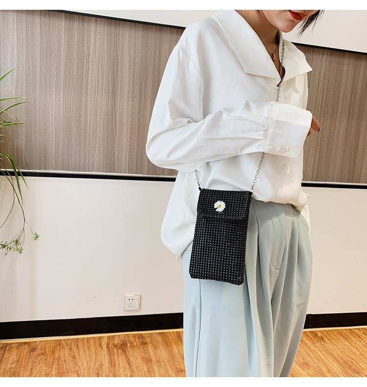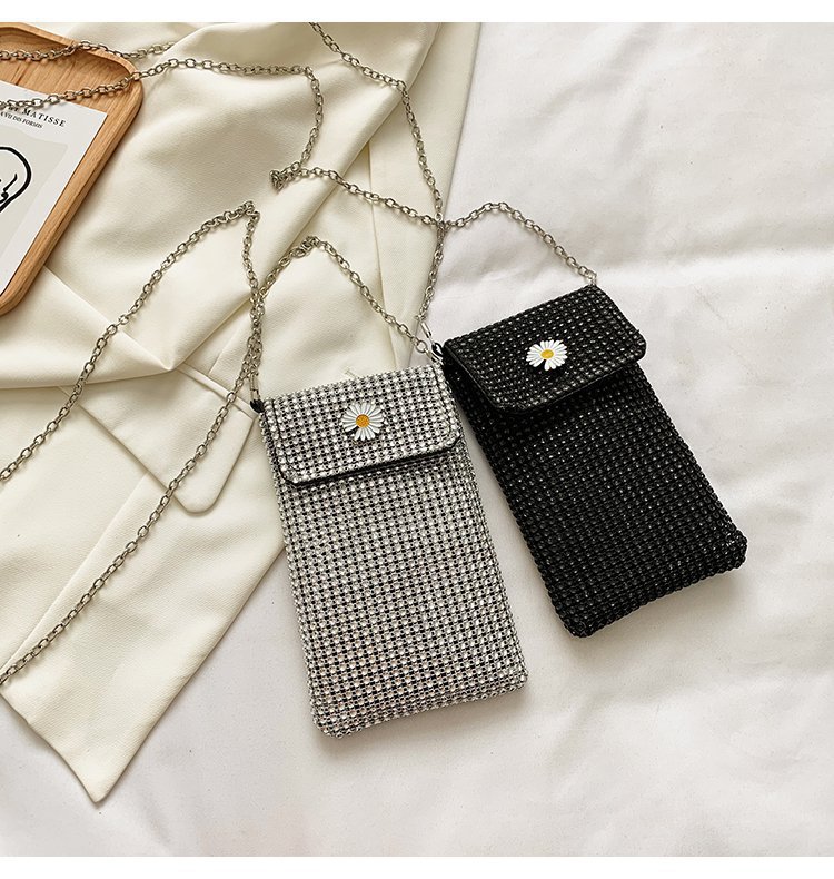 인터넷 연예인 같은 스타일 캐주얼 거리 전체 다이아몬드 반짝이 체인 어깨 크로스 바디 가방 유행 패션 빛나는 성격 휴대 전화 가방스토어 가기