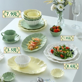复古高级感碗盘碟餐厅酒店家用套装异形个性甜品盘糕点米饭碗批发
