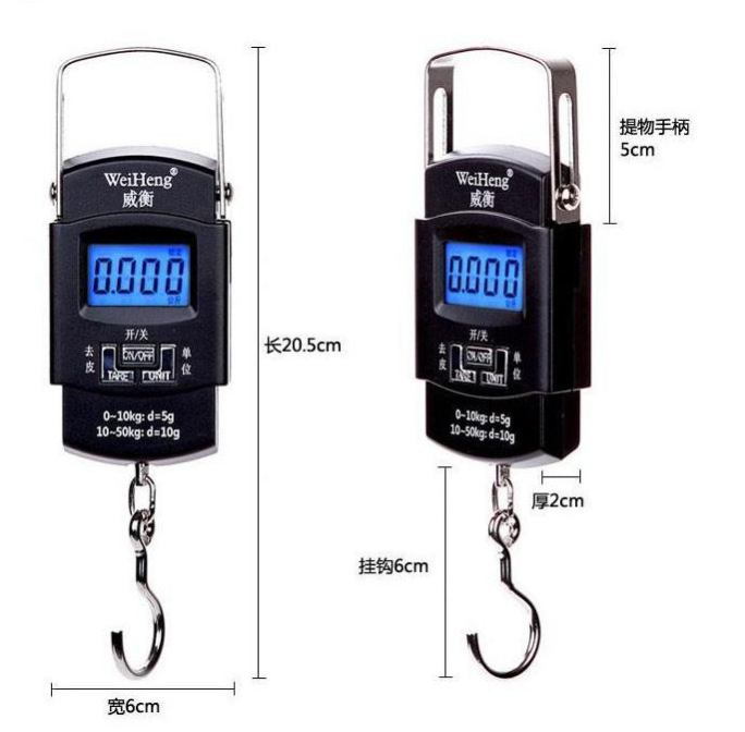 跨境 A08手提秤伸缩钩秤便携式电子秤挂钩秤行李秤50kg鱼钩秤户外