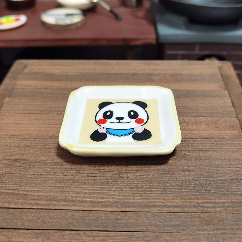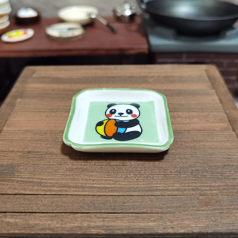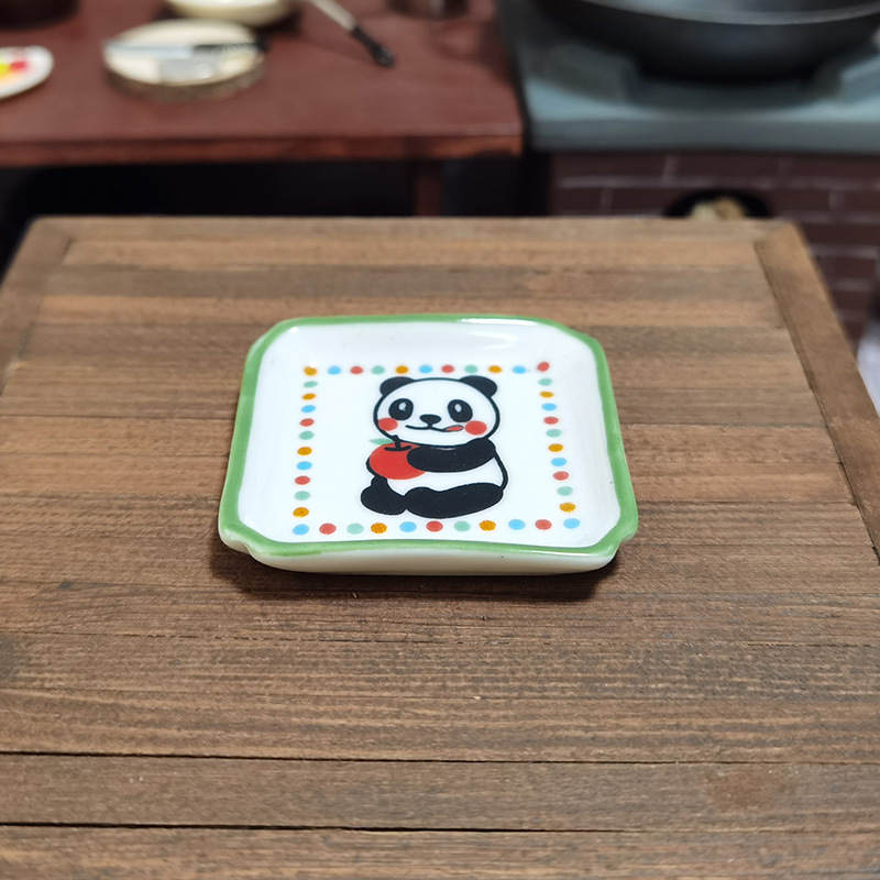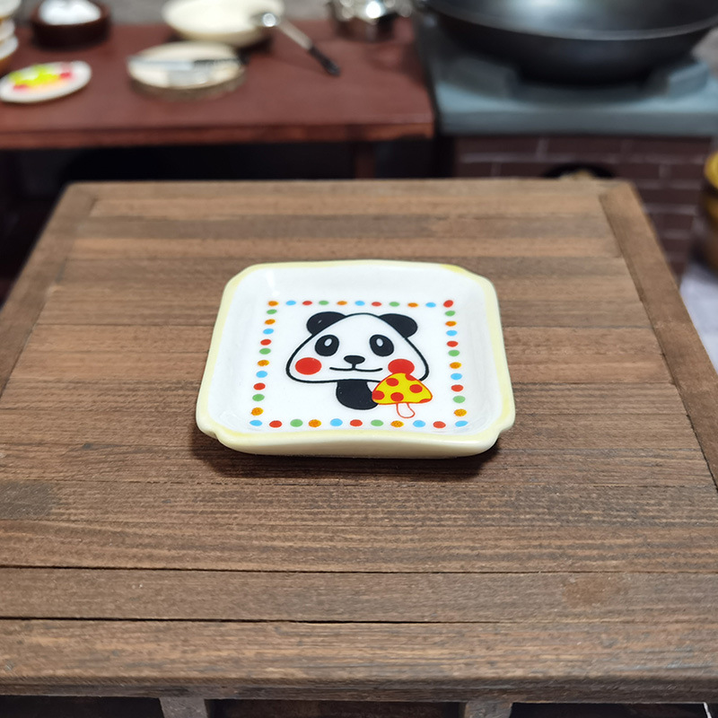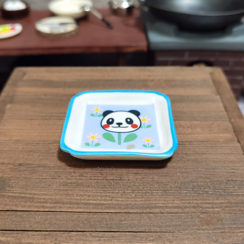 포켓 스토리 미니 세라믹 팬더 접시 작은 주방 음식 플레이 하우스 실제 요리와 볶음