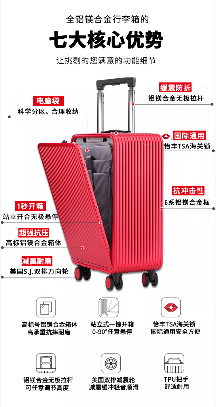 웨딩 수하물 지참금 상자 레드 박스 트롤리 박스 여성용 수하물 웨딩 코드 신부 지참금 상자 20 인치