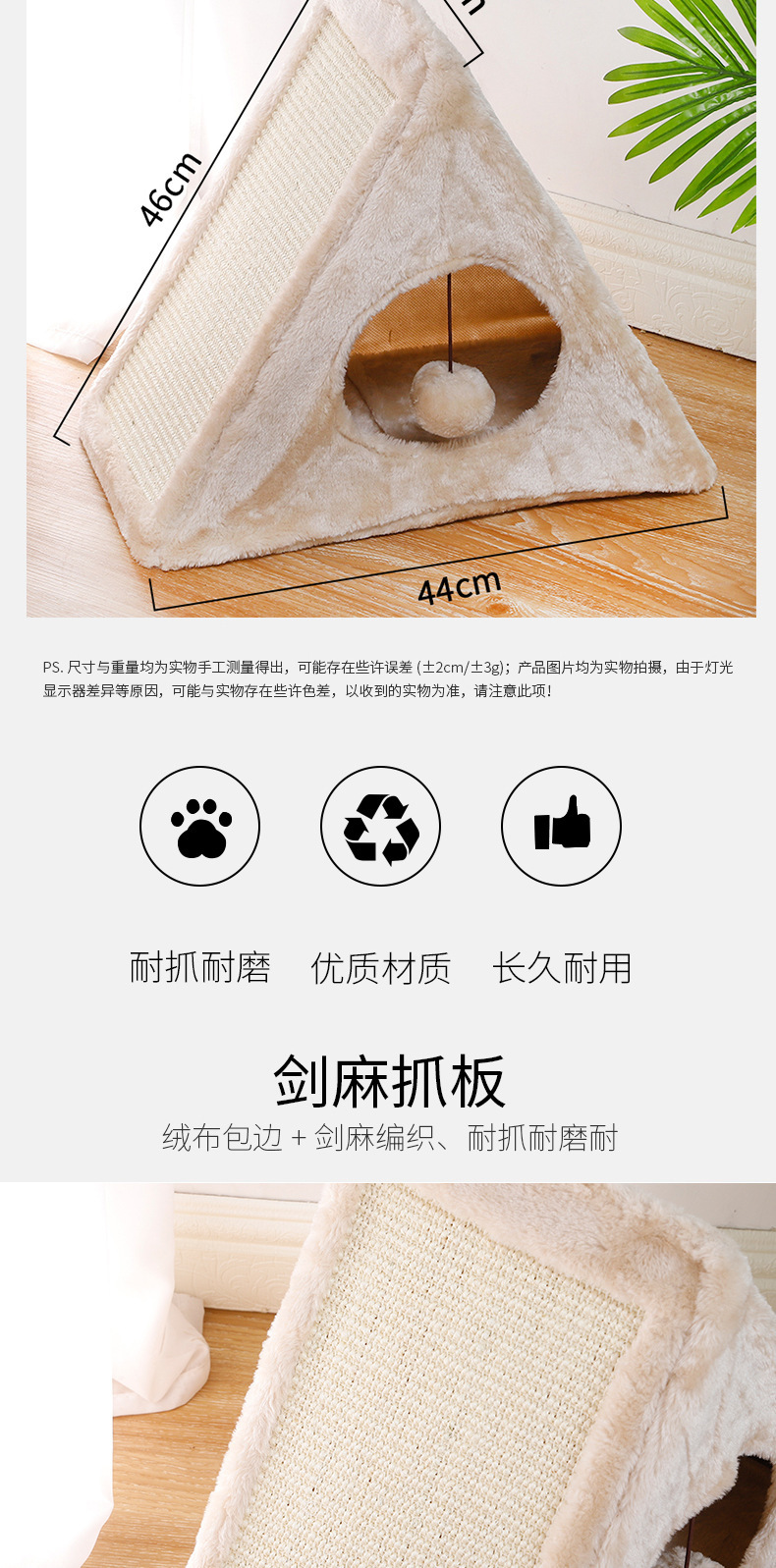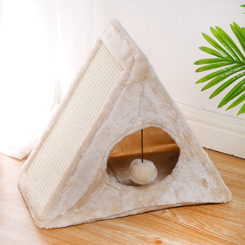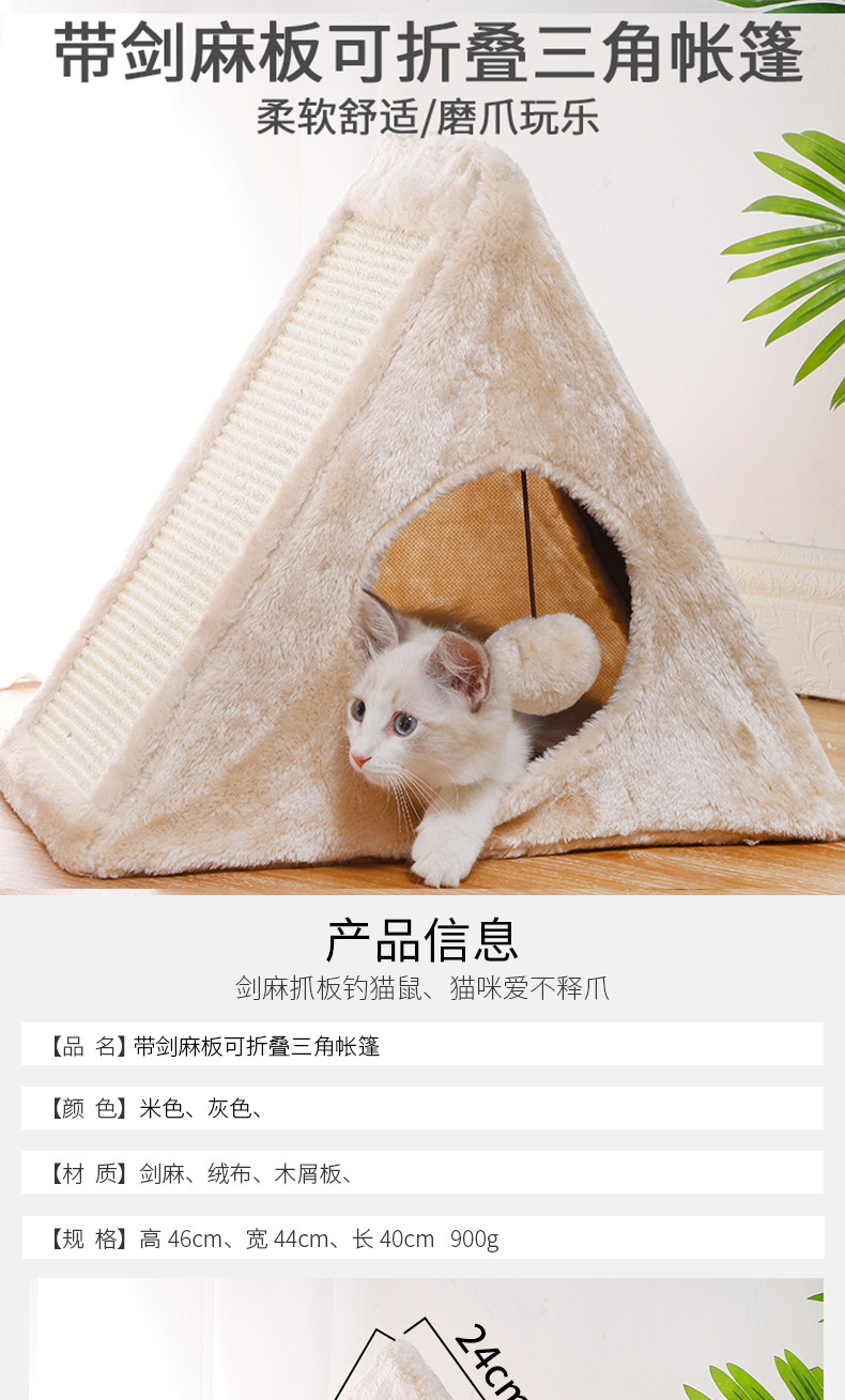 접이식 고양이 삼각형 텐트 도매 애완 동물 고양이 침낭 장난감 사이잘삼 고양이 등산 랙 고양이 스크래치 보드 고양이 둥지