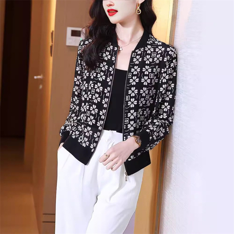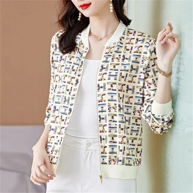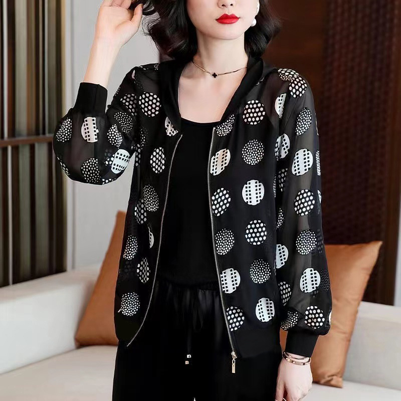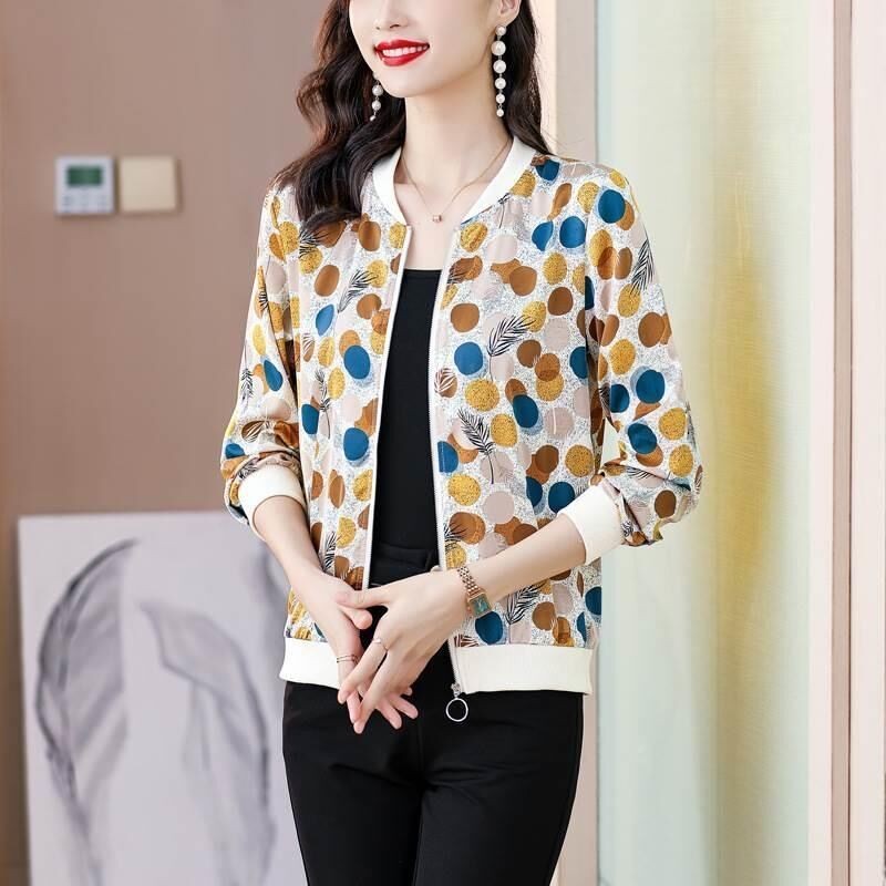 시폰 짧은 지퍼 자켓 여성 긴팔 봄, 가을 2025 태국 새로운 느슨한 카디건 자켓 여름 태양 보호 의류스토어 가기