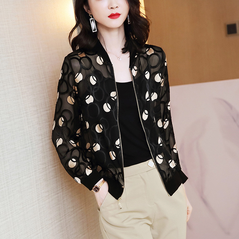 시폰 짧은 지퍼 자켓 여성 긴팔 봄, 가을 2025 태국 새로운 느슨한 카디건 자켓 여름 태양 보호 의류