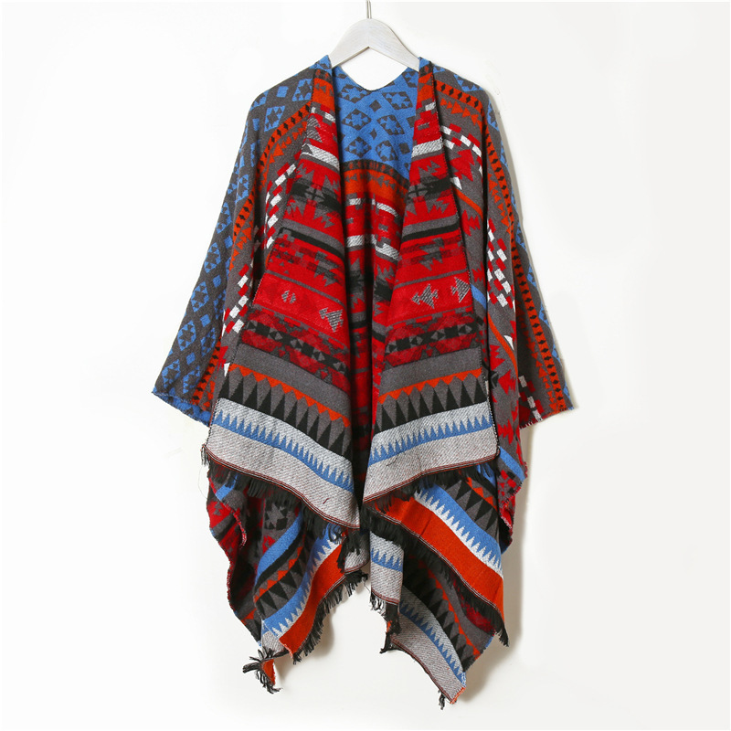 여행 사진 케이프 대형 숄 여성의 가을과 겨울 자외선 차단제 후드 스카프 레드 에스닉 니트 재킷