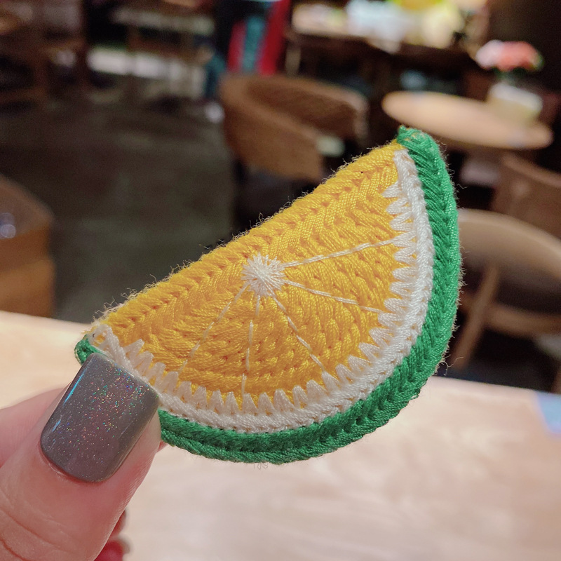 한국식 현아 야 울 니트 머리핀 소녀 아기 니트 과일 측면 앞머리 클립 여성용 어린이 BB 클립스토어 가기