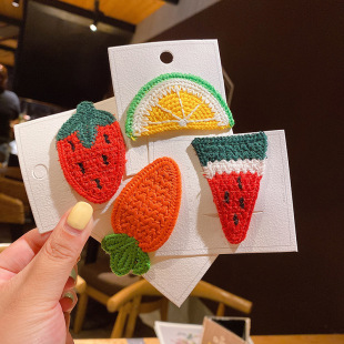 한국식 현아 야 울 니트 머리핀 소녀 아기 니트 과일 측면 앞머리 클립 여성용 어린이 BB 클립