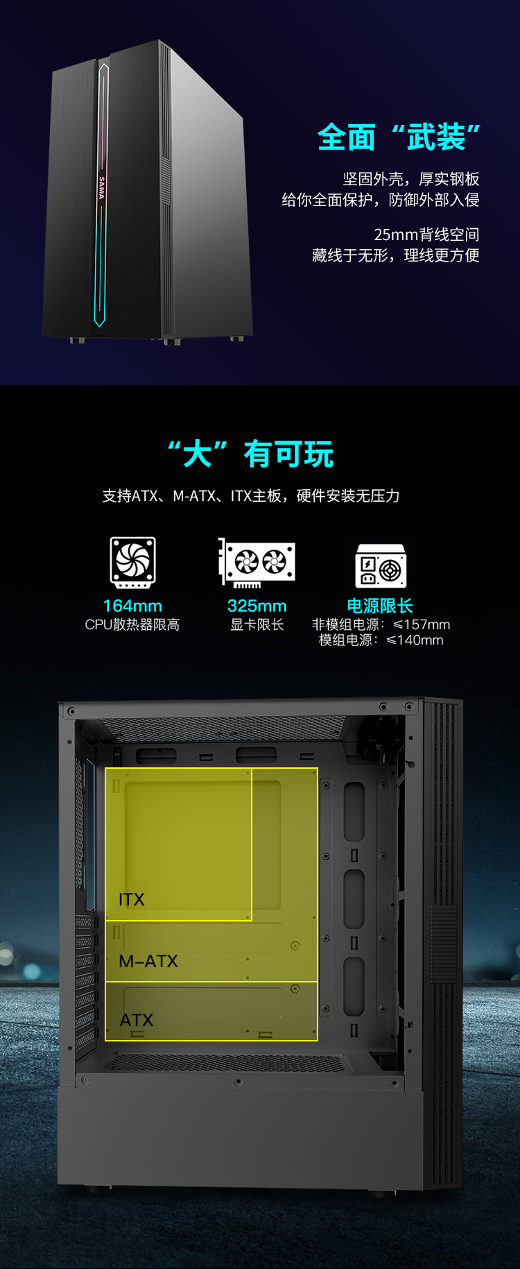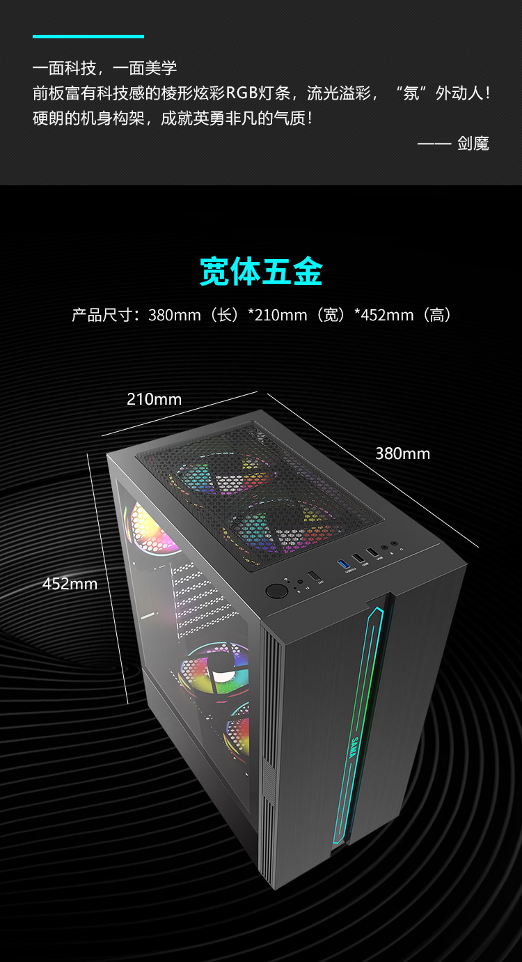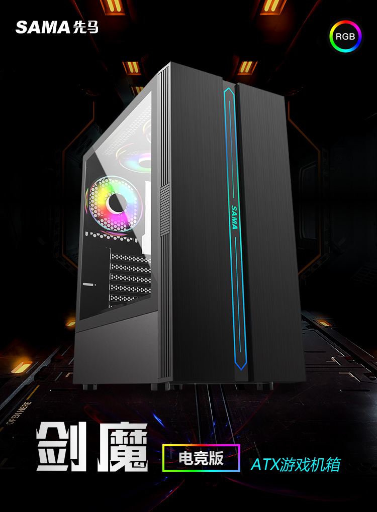 RGB 컴퓨터 게임 수냉식 ATX 대형 보드 메인 섀시를 통해 첫 번째 말 검 마법 전기 대회 버전 데스크탑 유리 측면스토어 가기