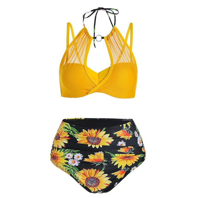 새로운 하이 웨이스트 패션 섹시 러플 수영복 여성용 유럽과 미국 아마존 핫 비키니 스플릿 수영복