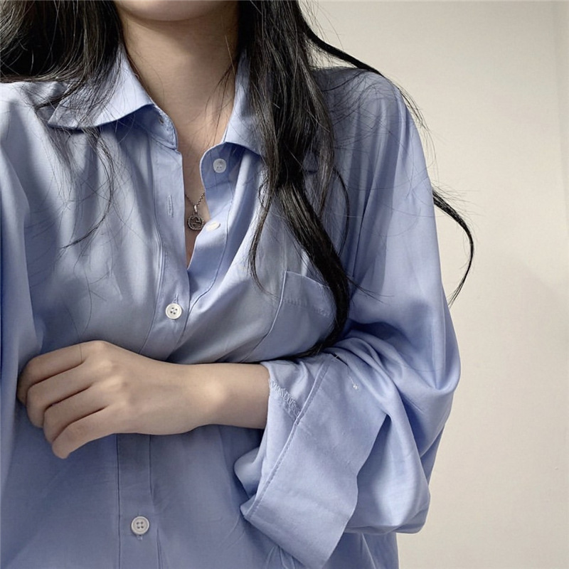 2024 루즈핏 셔츠 여성용 한국 스타일 시크 자외선 차단 실키한 드레이프감 긴팔 중간 길이 셔츠 우아하고 패셔너블하며 다재다능함