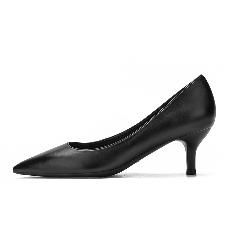 승무원 하이힐 여성 2025 새로운 중간 굽 블랙 하이힐 전문 부드러운 밑창 가죽 신발 블랙 작업 신발