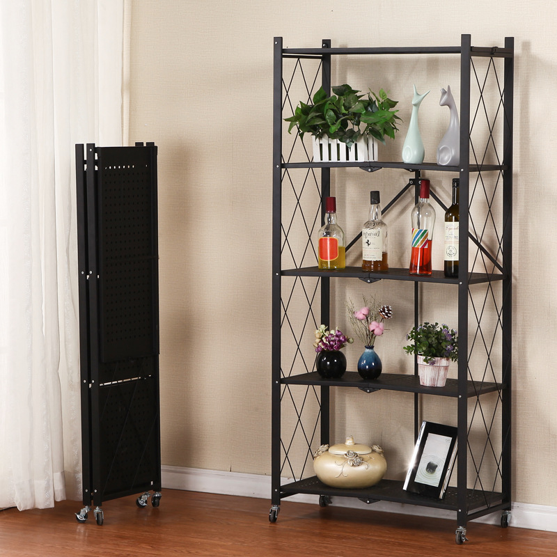 설치 무료 접이식 주방 수납 랙 바닥에 서있는 다층 수납 선반 전자 레인지 발코니 이동식 수납 랙