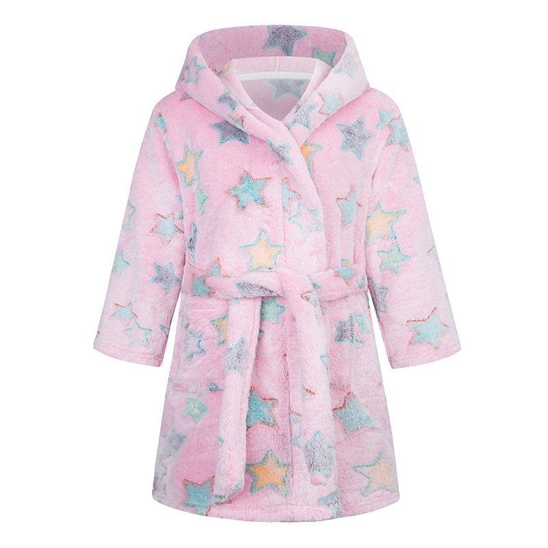 阻燃面料 儿童法兰绒浴袍 双面绒 连帽加兜款