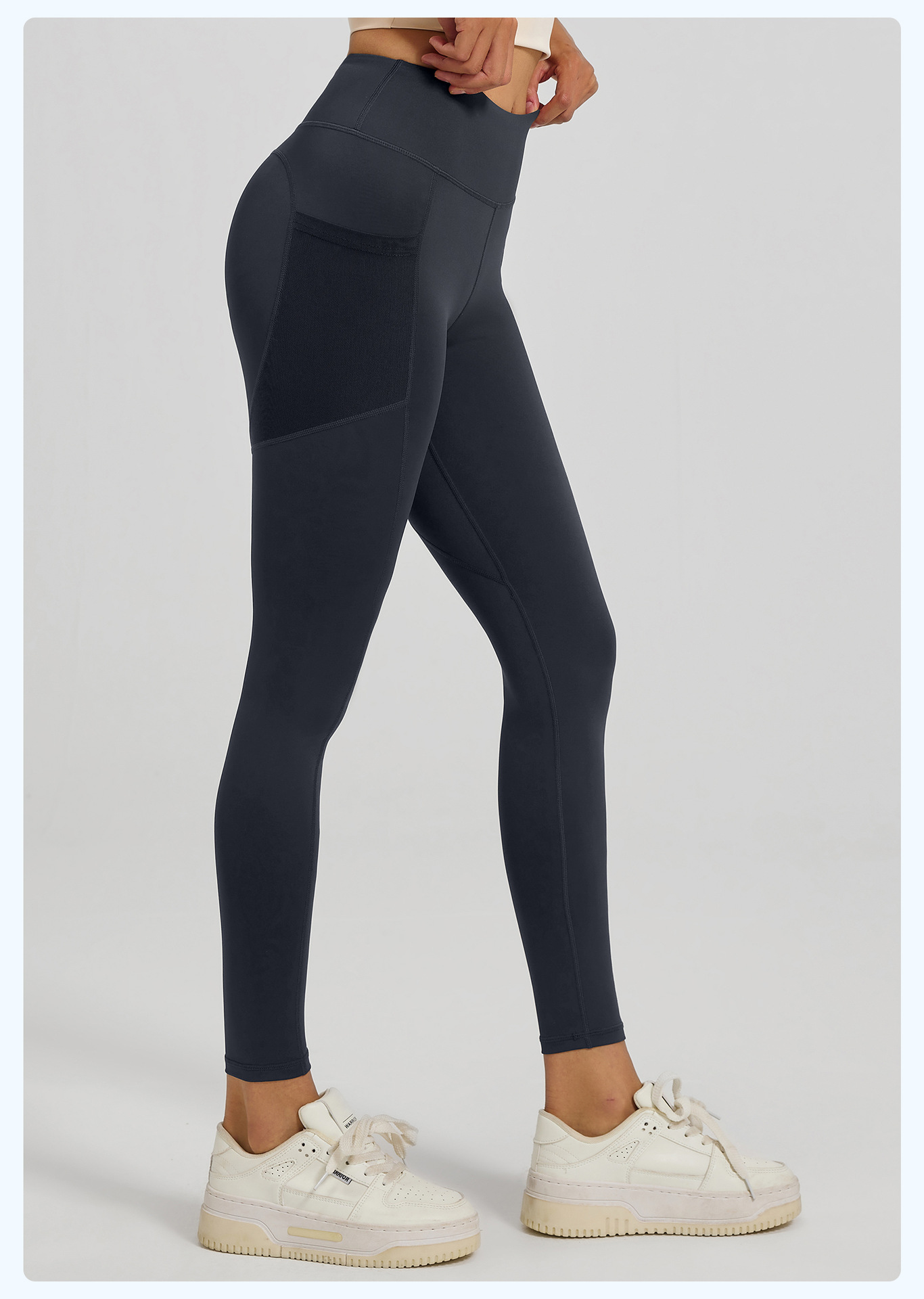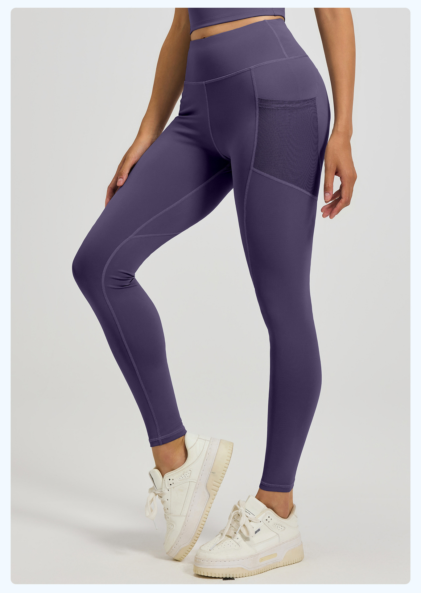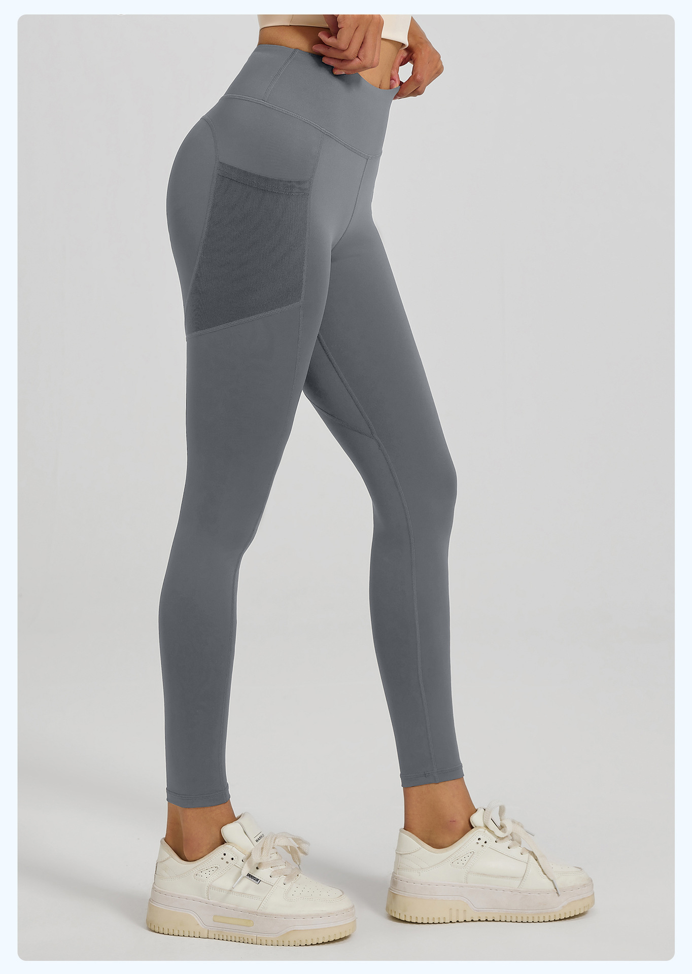 Juyitang 유럽과 미국의 요가 바지 여성의 꽉 끼는 엉덩이 리프팅 하이 웨이스트 메쉬 사이드 포켓 러닝 스포츠 피트니스 바지스토어 가기