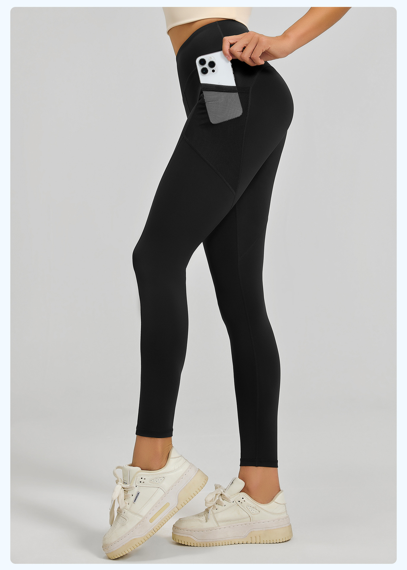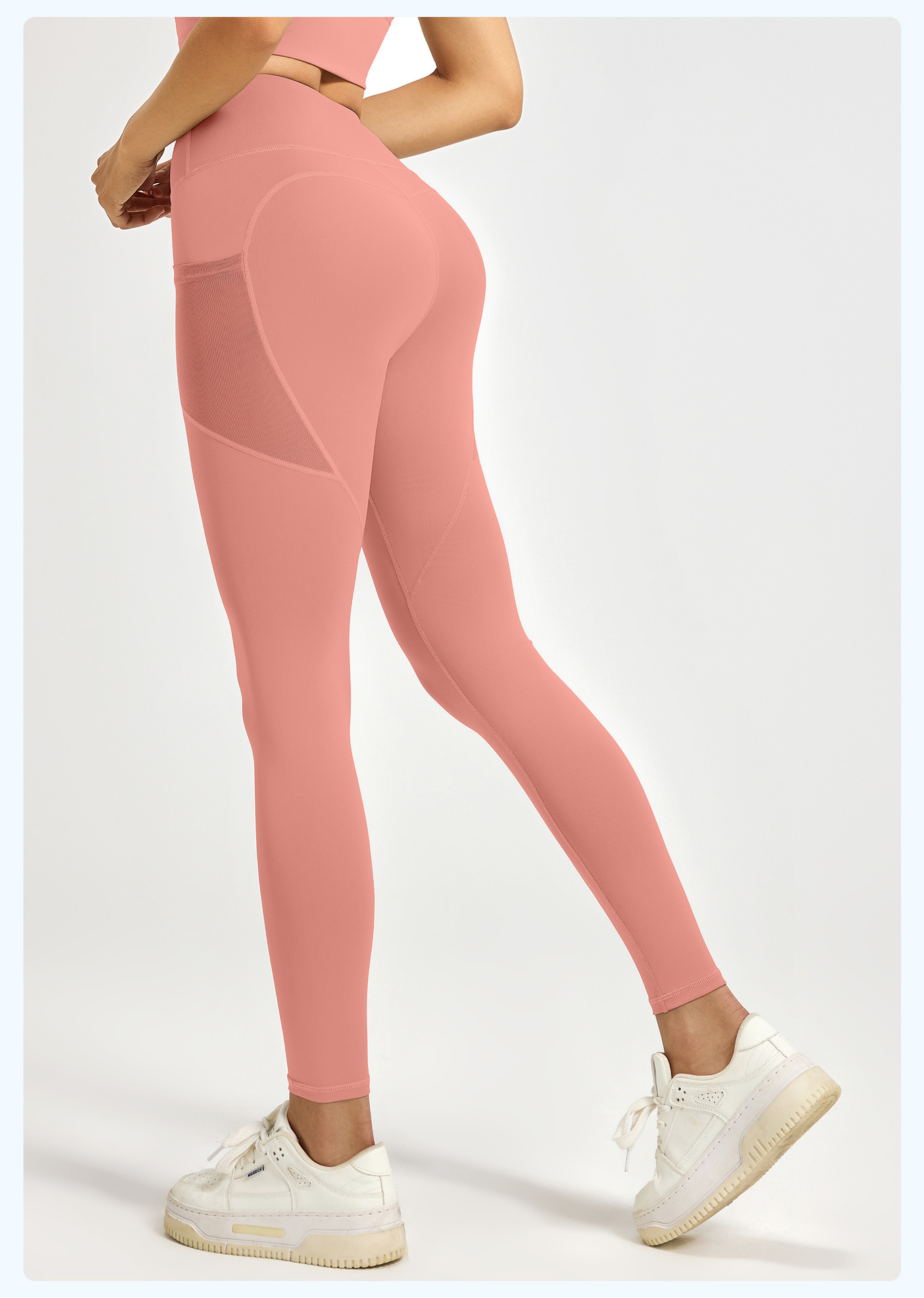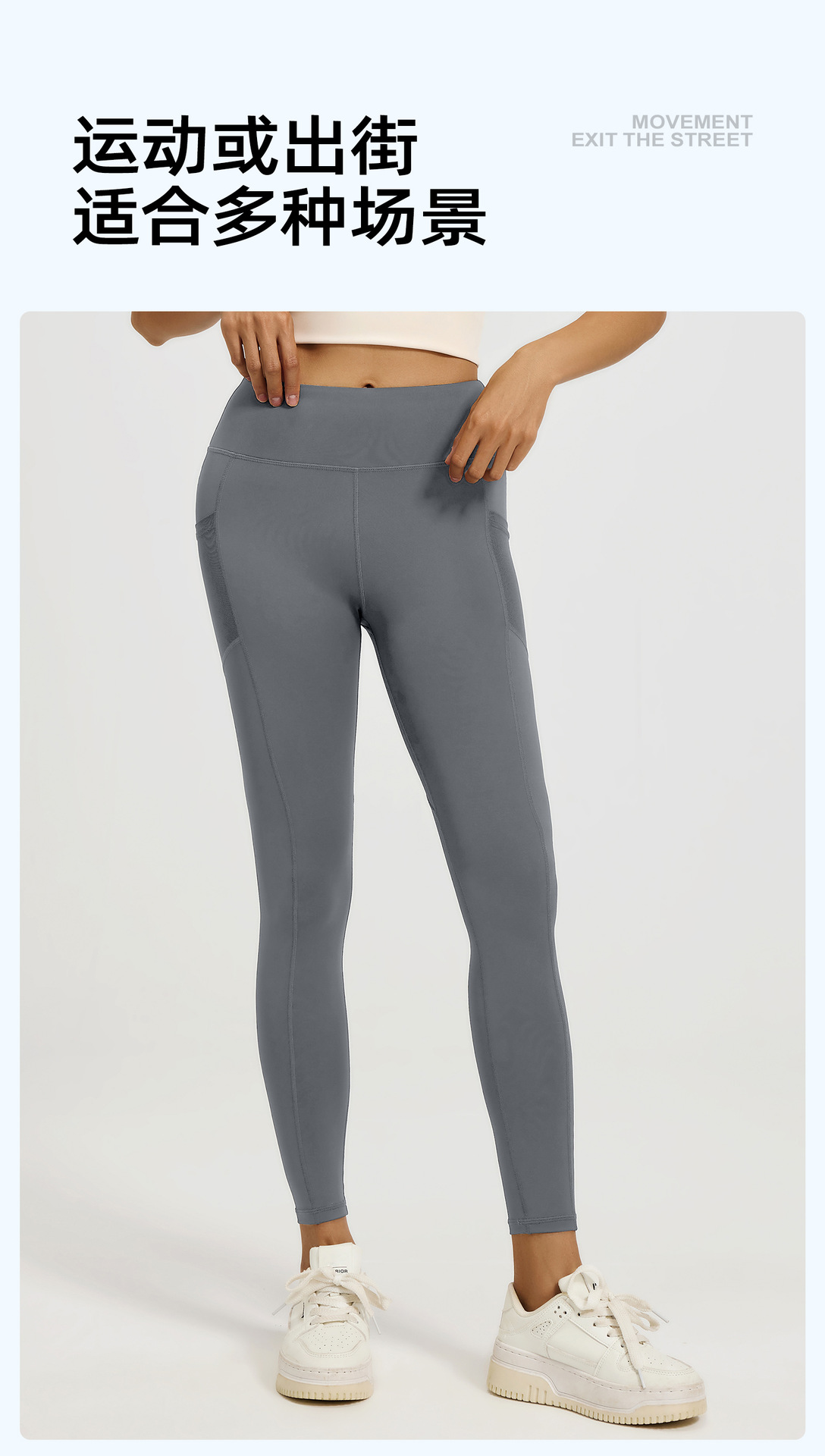 Juyitang 유럽과 미국의 요가 바지 여성의 꽉 끼는 엉덩이 리프팅 하이 웨이스트 메쉬 사이드 포켓 러닝 스포츠 피트니스 바지스토어 가기