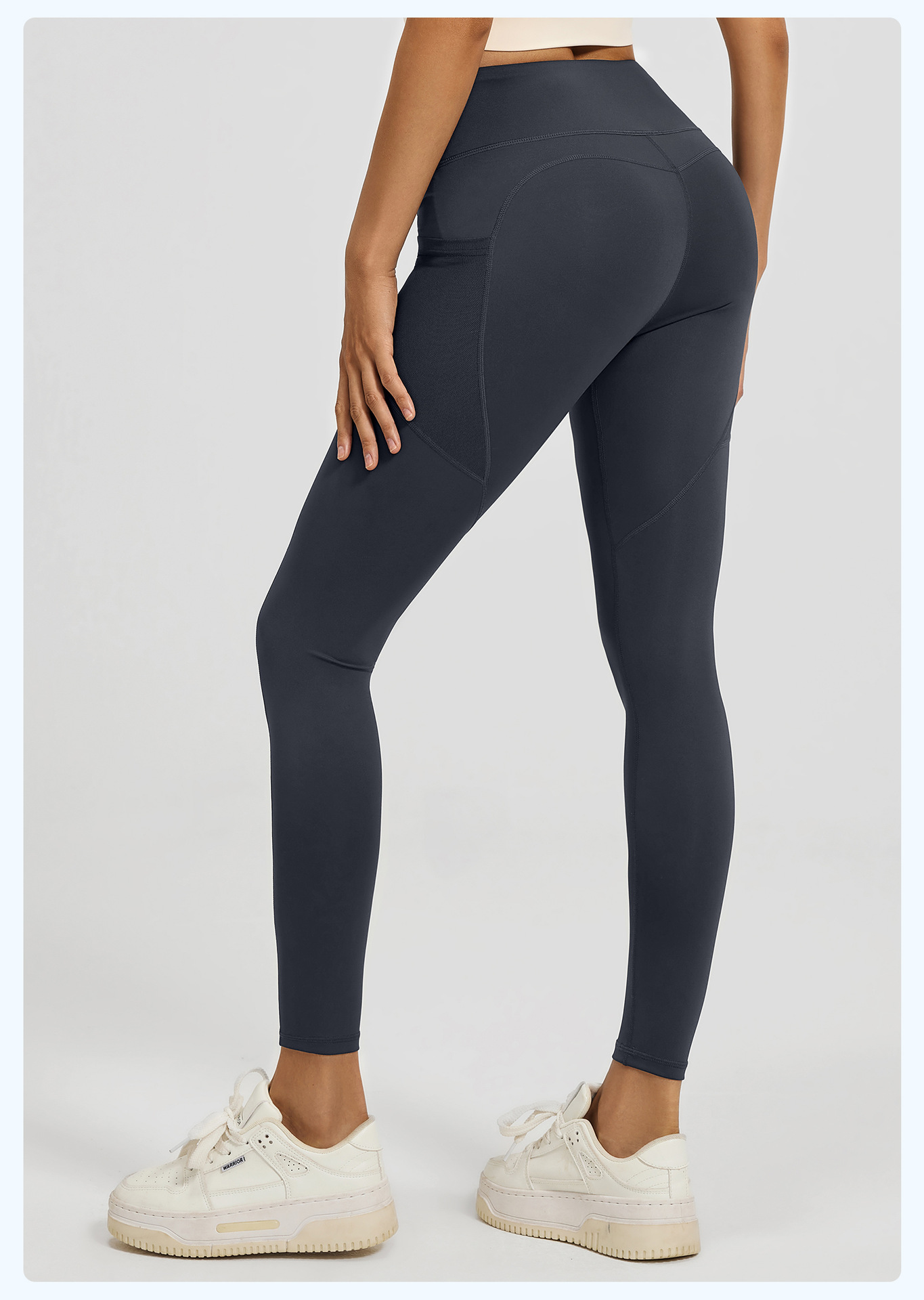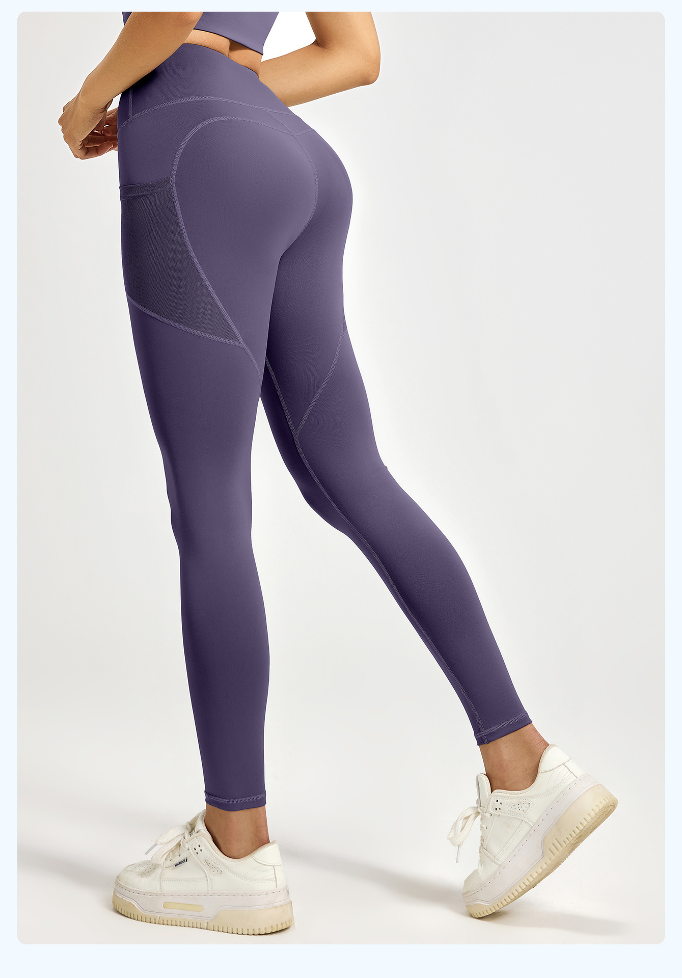 Juyitang 유럽과 미국의 요가 바지 여성의 꽉 끼는 엉덩이 리프팅 하이 웨이스트 메쉬 사이드 포켓 러닝 스포츠 피트니스 바지