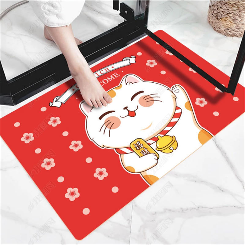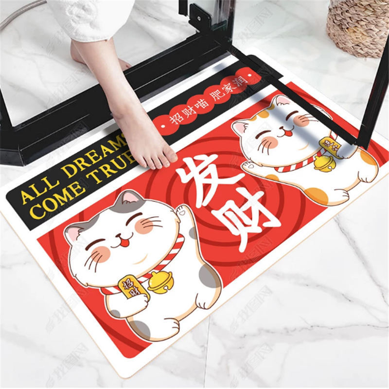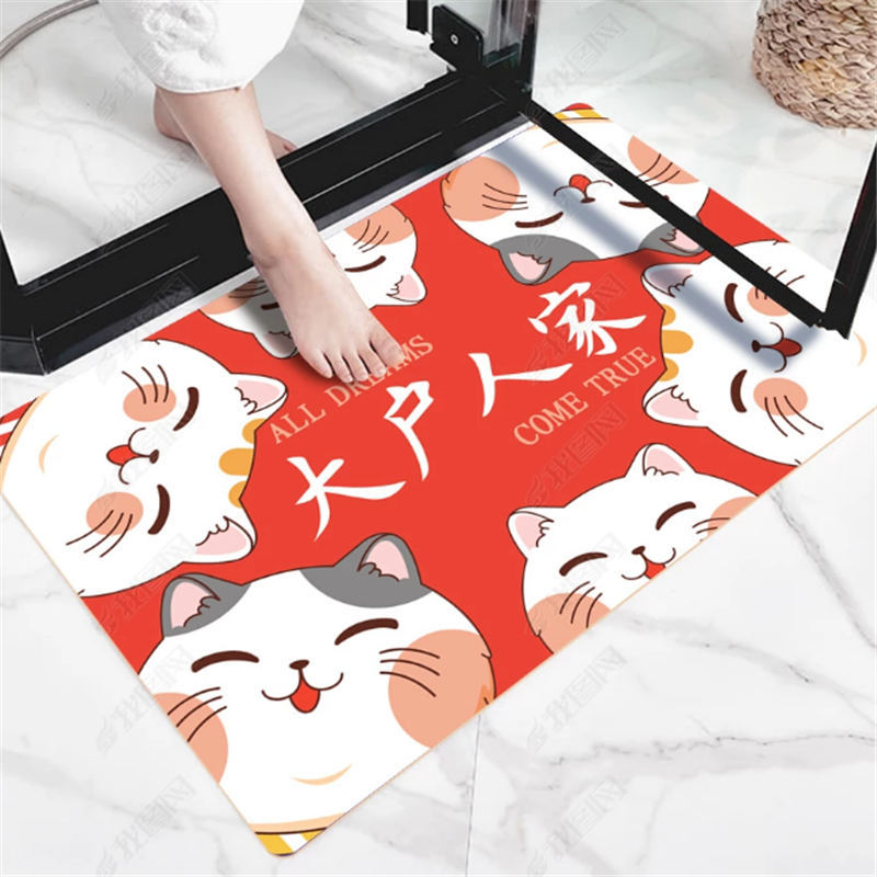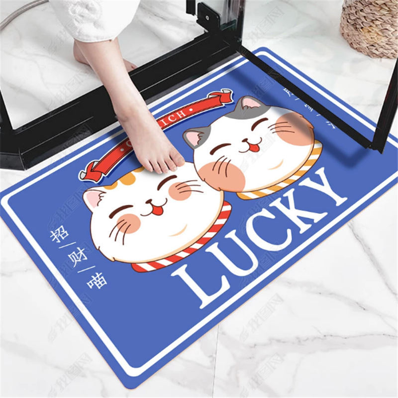 럭키 고양이 욕실 입구 바닥 매트 주방 발 매트 욕실 매트 가정용 문 침실 만화 바닥 매트스토어 가기