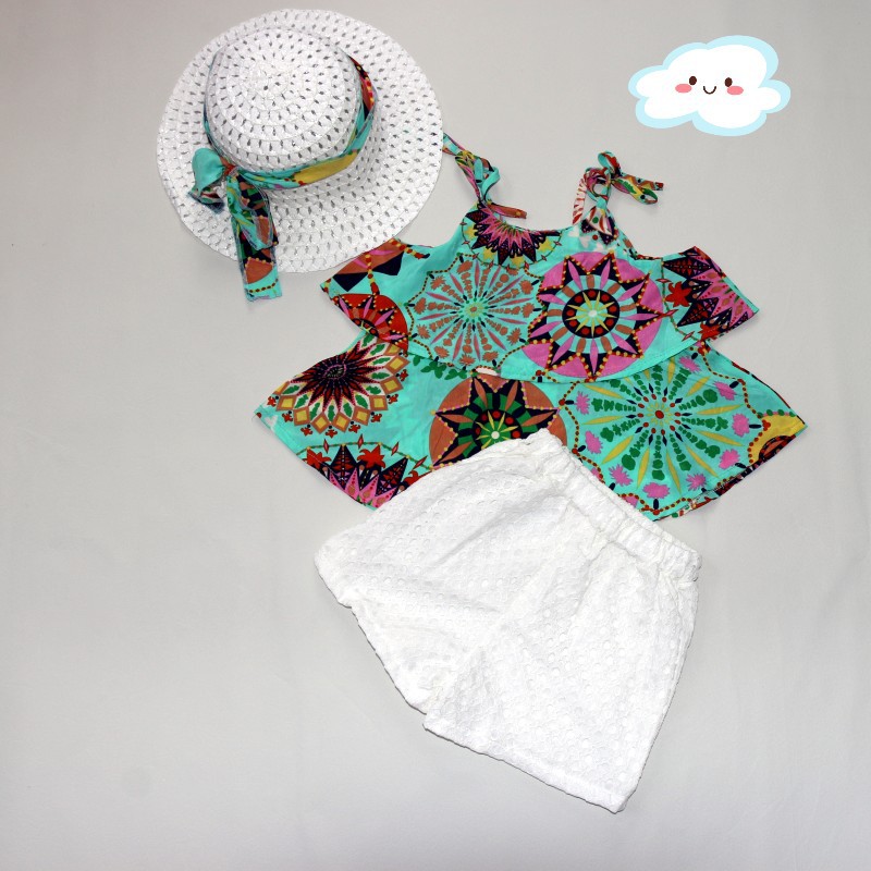 여자 쉬폰 세트 새로운 여름 어린이 꽃 홀터 반바지 아기 서양 스타일 투피스 공장 직접스토어 가기