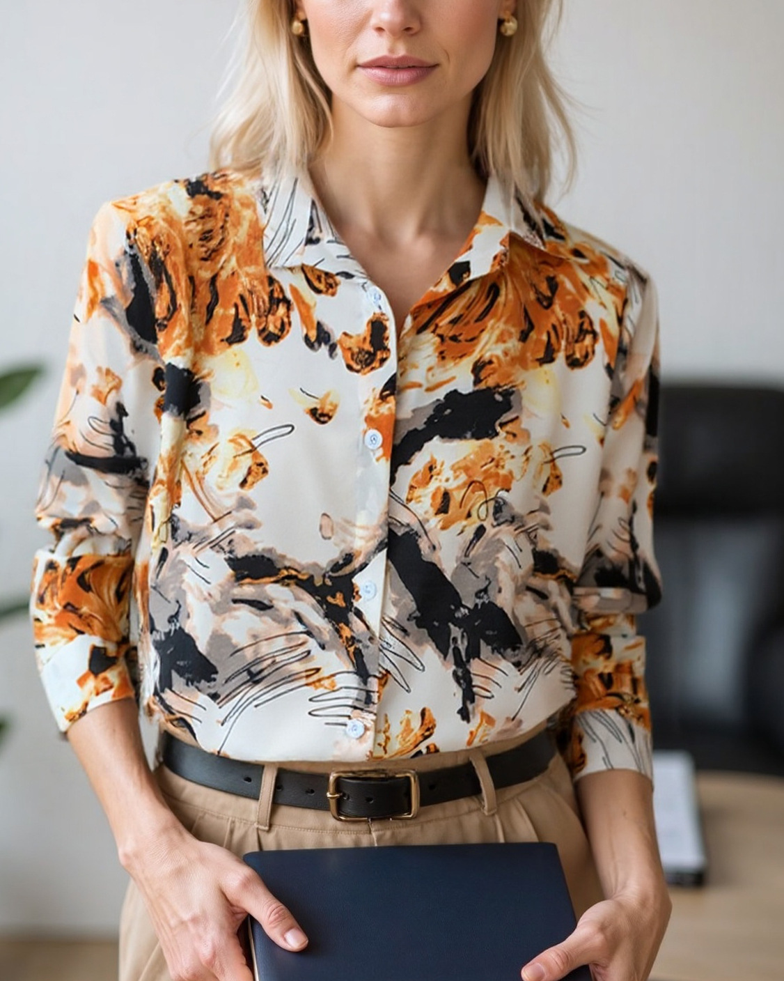 대외 무역 여성 의류 아마존 유럽과 미국 2025 봄, 가을 새로운 스타일 프린트 긴팔 탑 옷깃 쉬폰 셔츠 여성 셔츠스토어 가기