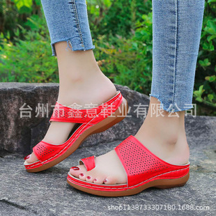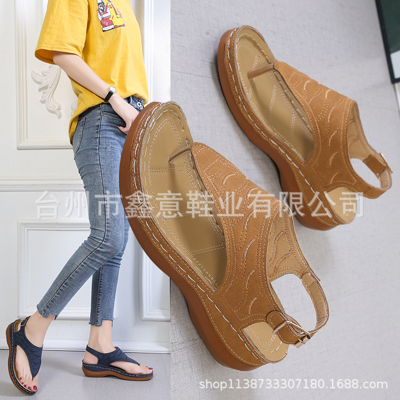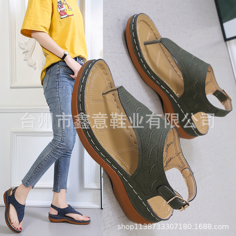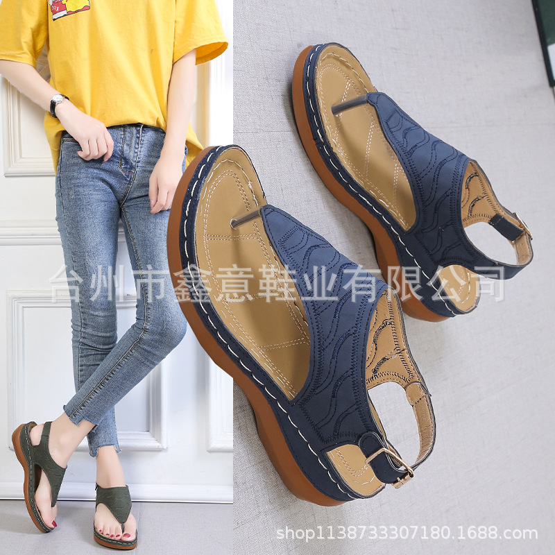 아마존 새로운 크로스 보더 무역 샌들 여성의 아마존 웨지 힐 유럽과 미국 플러스 사이즈 여성 신발 단색 여성 샌들스토어 가기