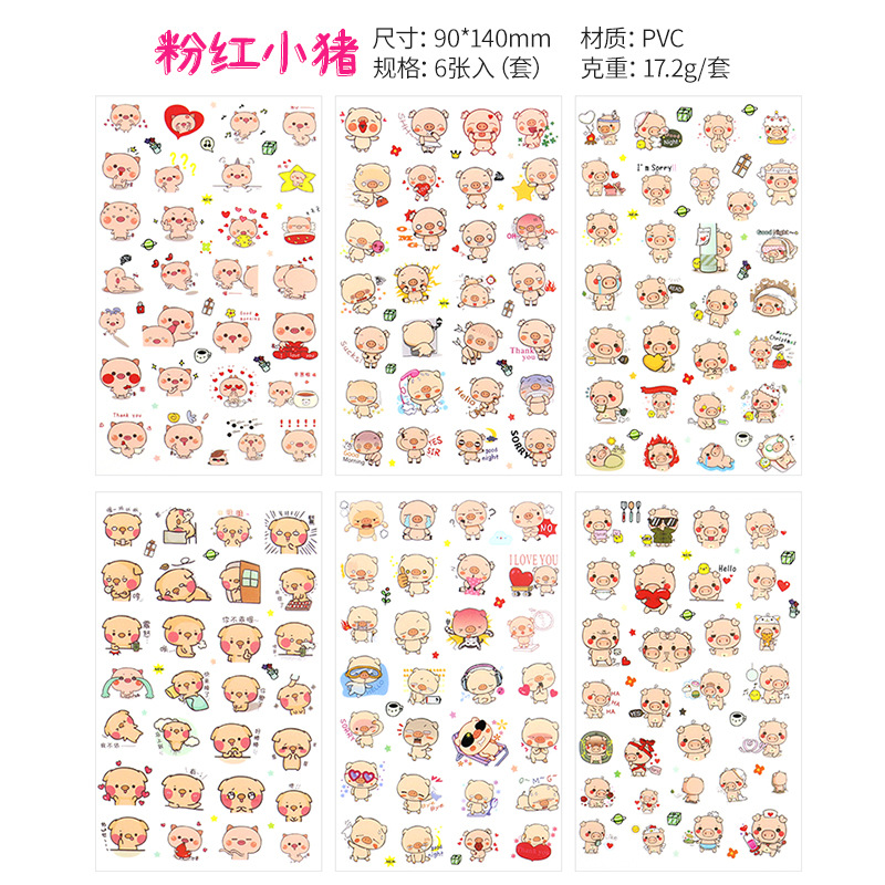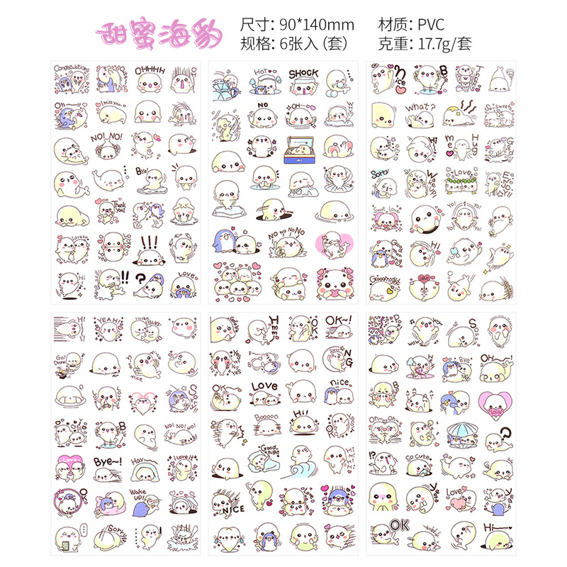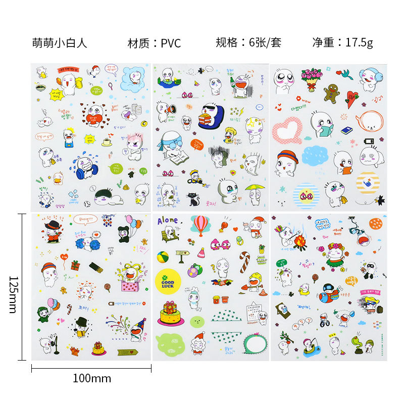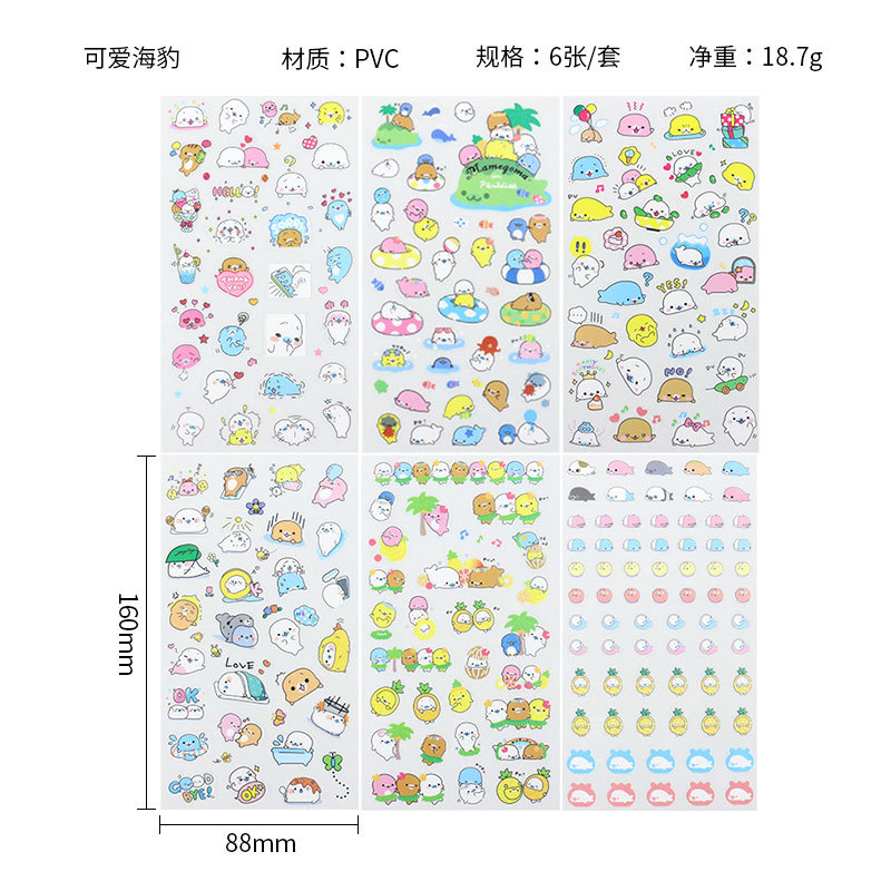 한국 만화 동물 투명 PVC 스티커 DIY 손 계정 일기 장식 재료 스티커 아기 성장 애니메이션 스티커