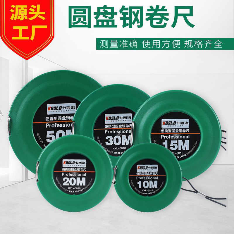 소스 제조 업체 도매 테이프 측정 라운드 스틸 눈금자 50 미터 30 미터 20 미터 15 미터 10 미터 디스크 눈금자 프로젝트 대형 롤 눈금자