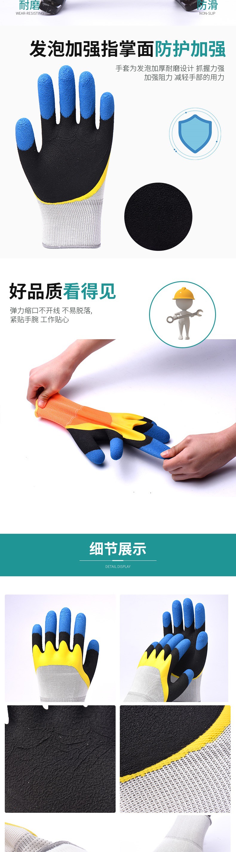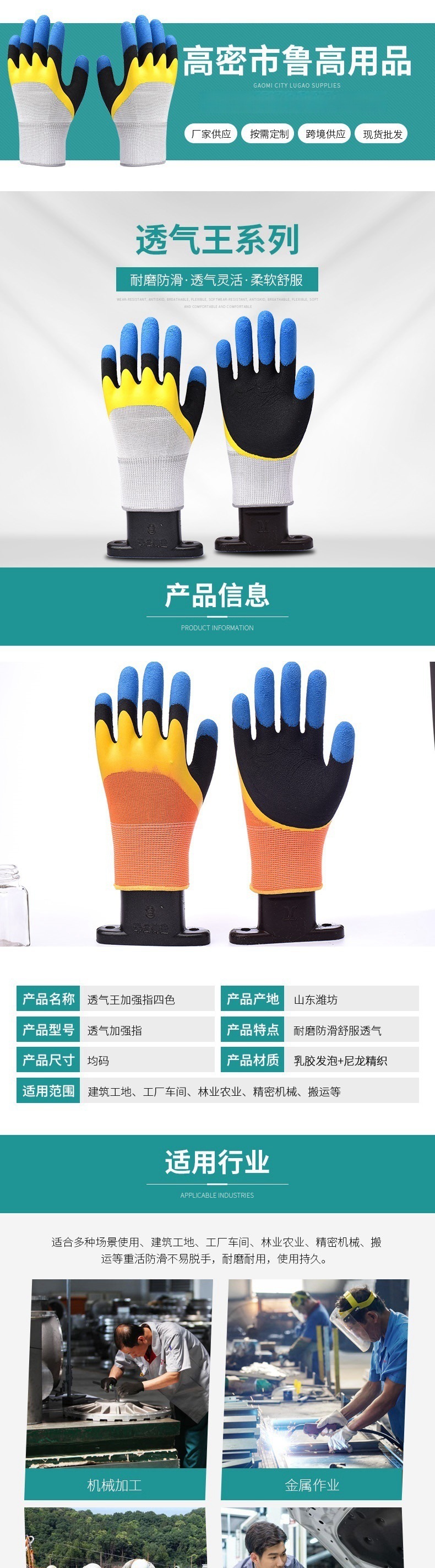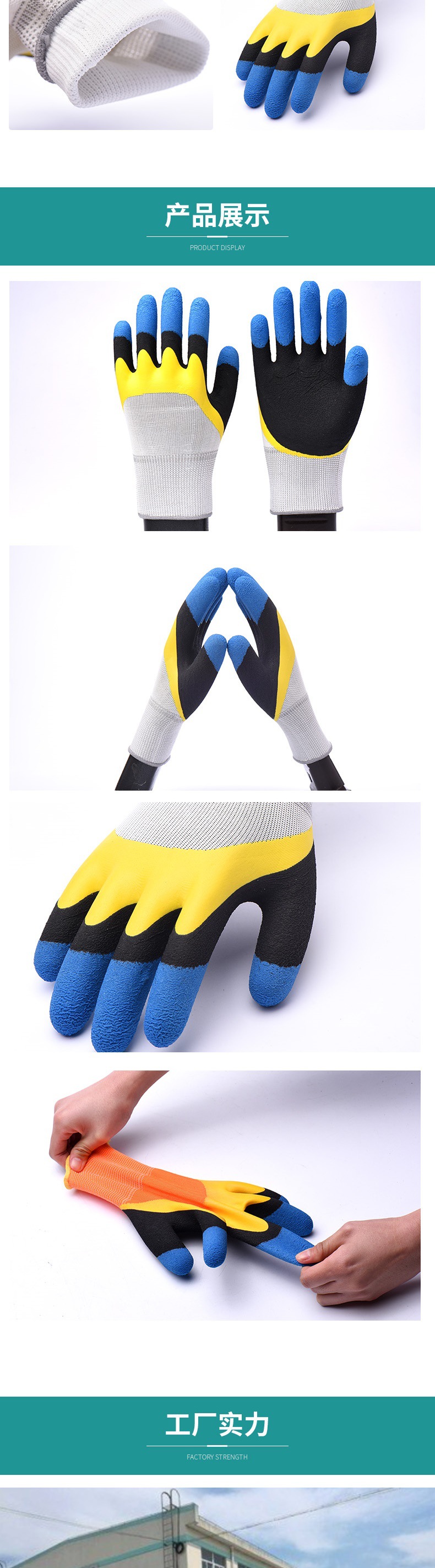 통기성 킹 강화는 4 색 노동 보호 장갑 3 층 침지 보호 내마모성 미끄럼 방지 인쇄 로고 제조업체 도매
