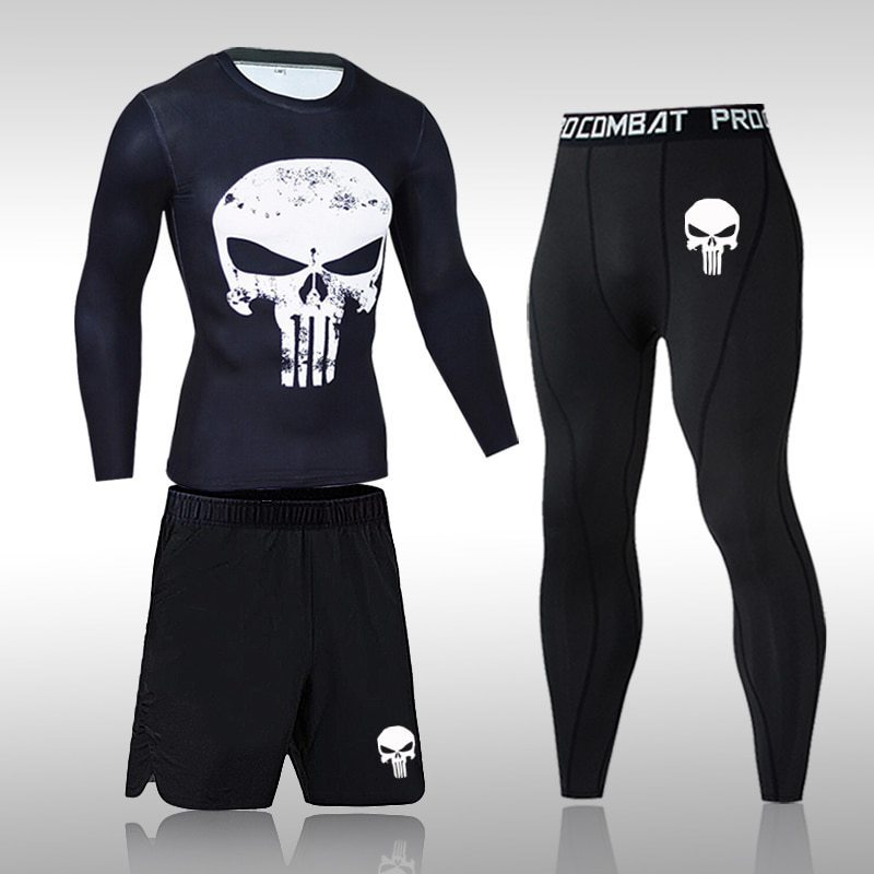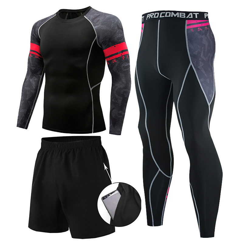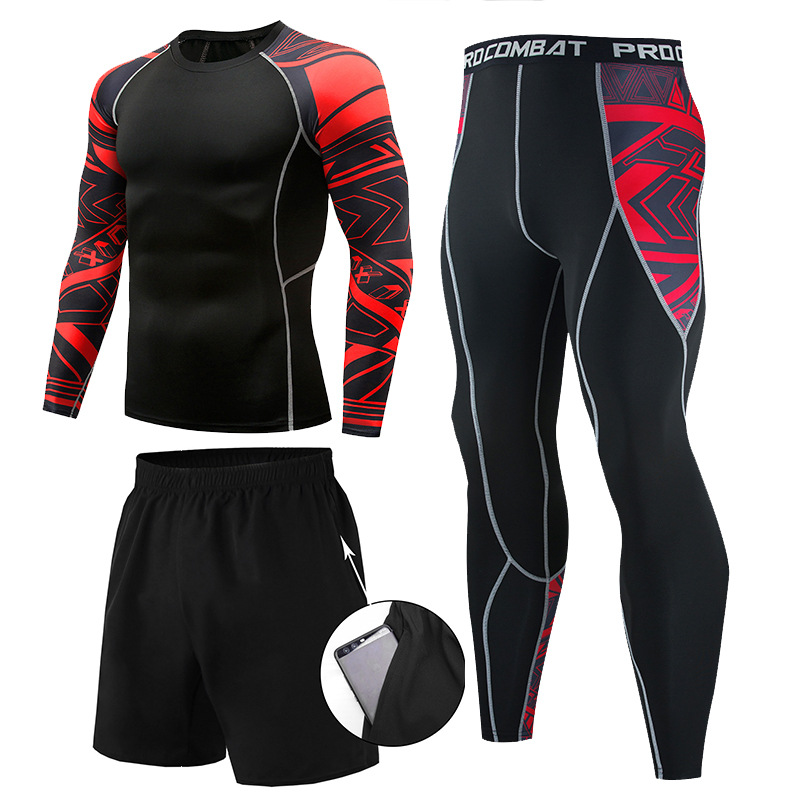 피트니스 세트 남자의 세트 3 피스 속건 긴 소매 세트 달리기 스포츠 세트 농구 훈련 세트 야외 운동복