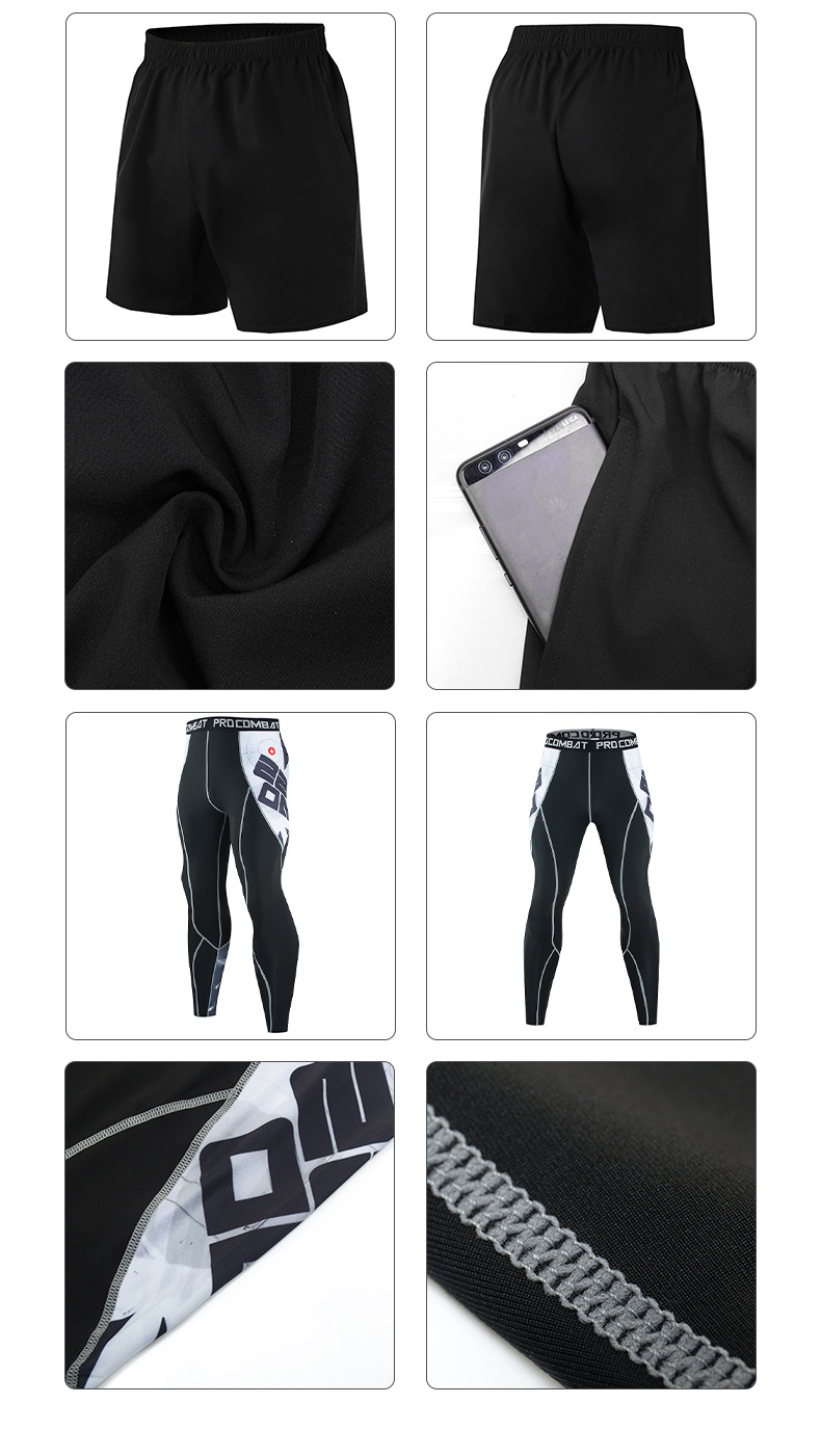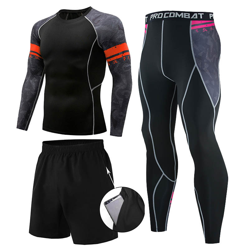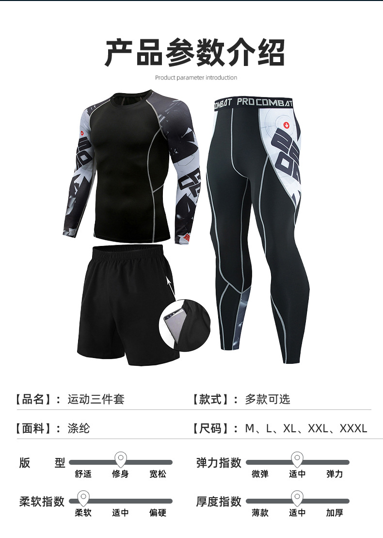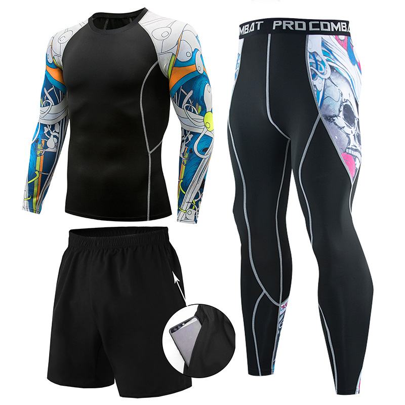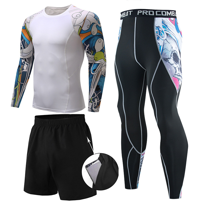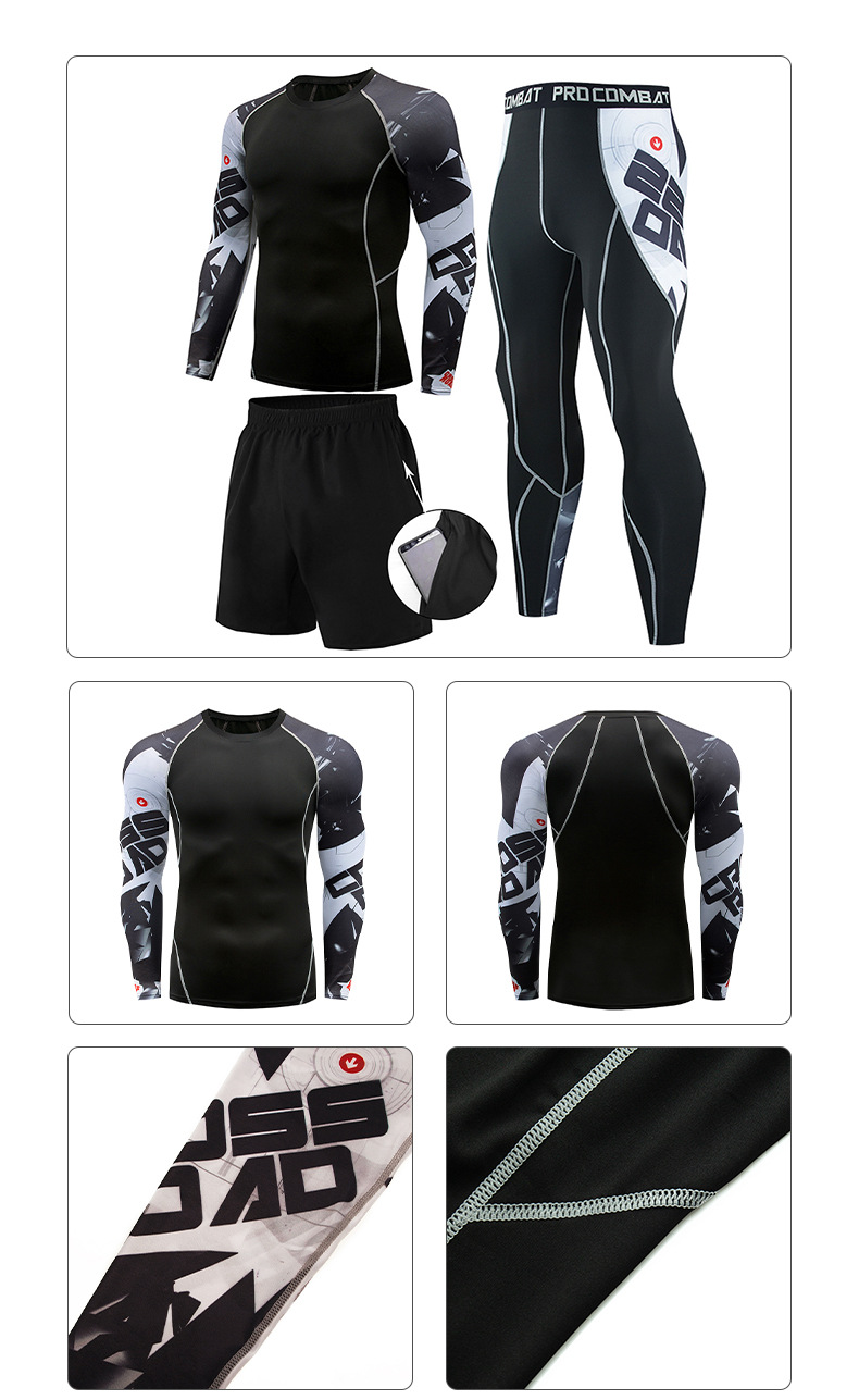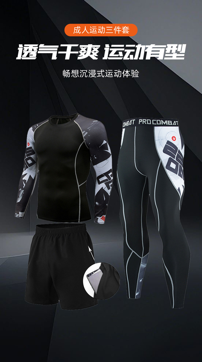 피트니스 세트 남자의 세트 3 피스 속건 긴 소매 세트 달리기 스포츠 세트 농구 훈련 세트 야외 운동복스토어 가기