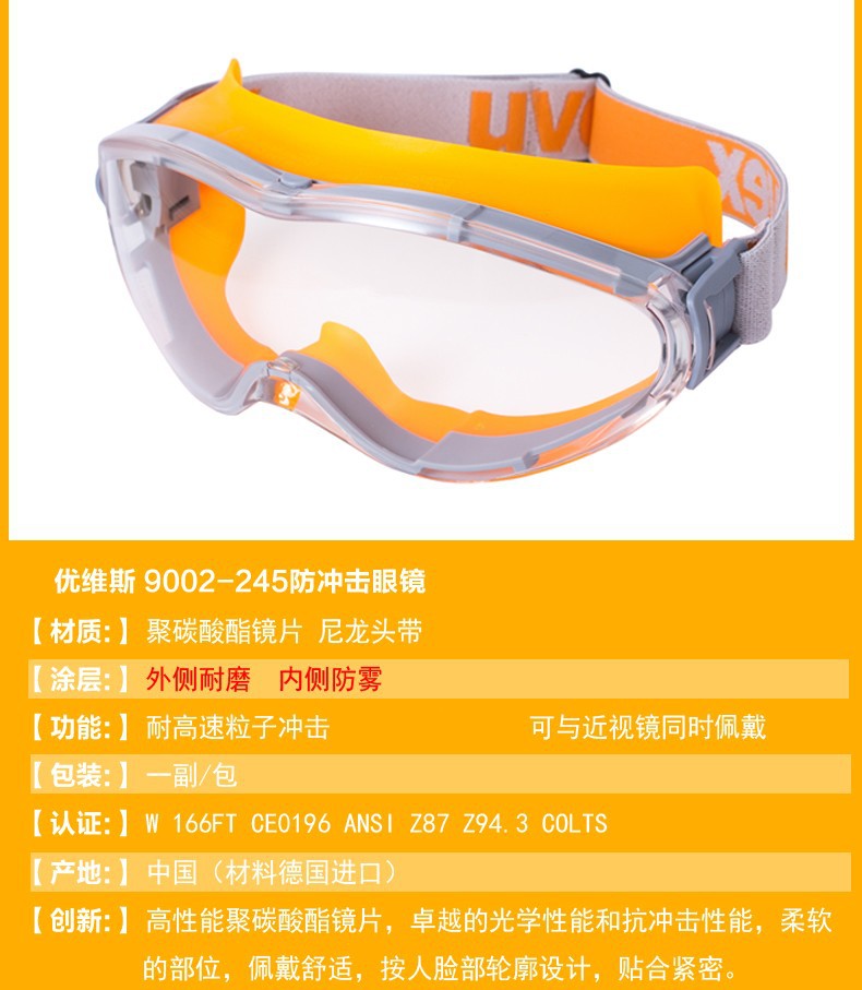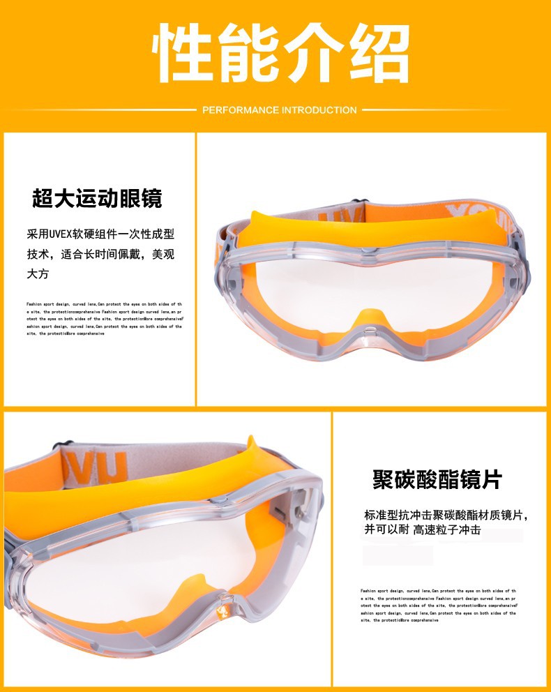 UVEX防护眼镜 男女运动户外护目镜 工业防溅 防风防沙骑行眼罩 可