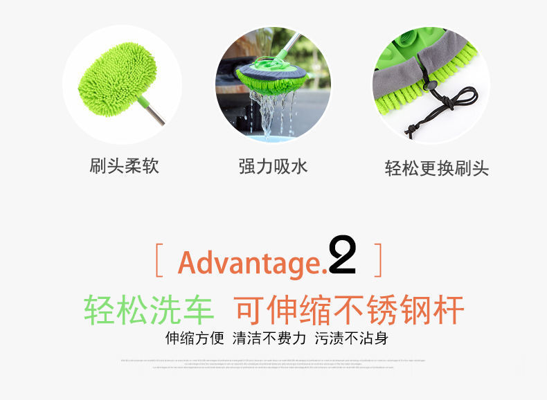 • 녹색 chenille 걸레 [3 섹션 텔레스코픽 알루미늄 합금 막대]]