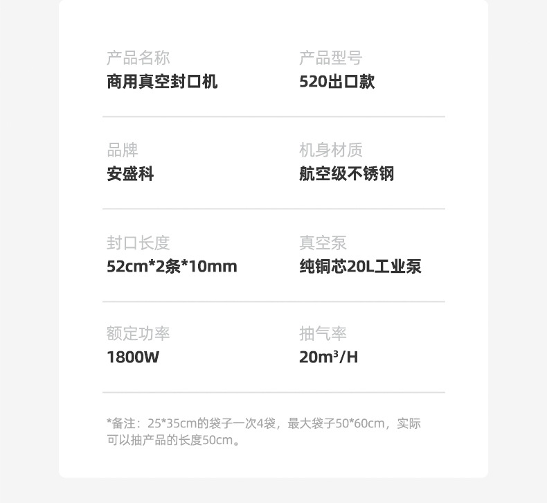 AXAC 진공 포장 기계 밀봉 타이트한 상업용 대형 자동 압축 기계 다크 브라운 쌀 습식 및 건조스토어 가기