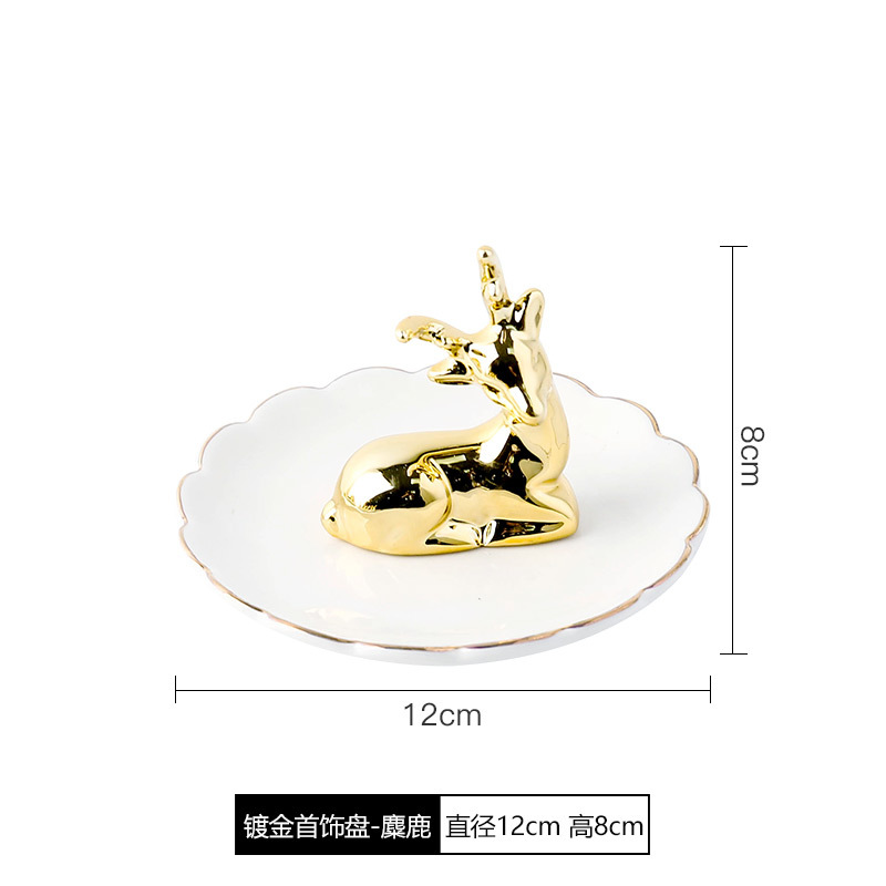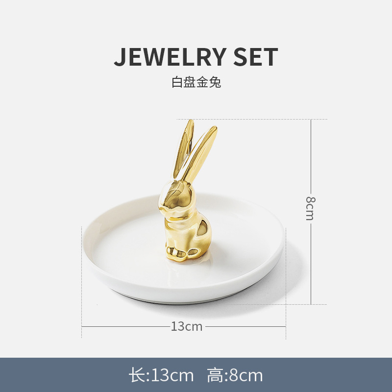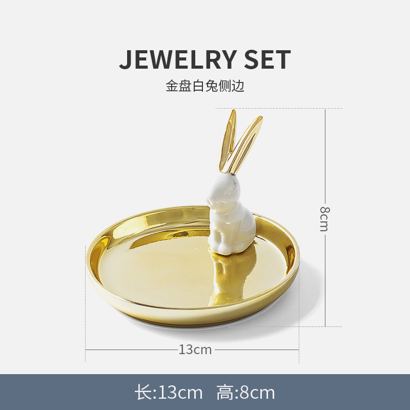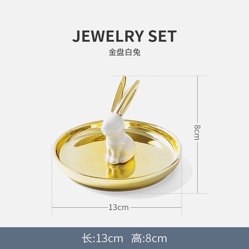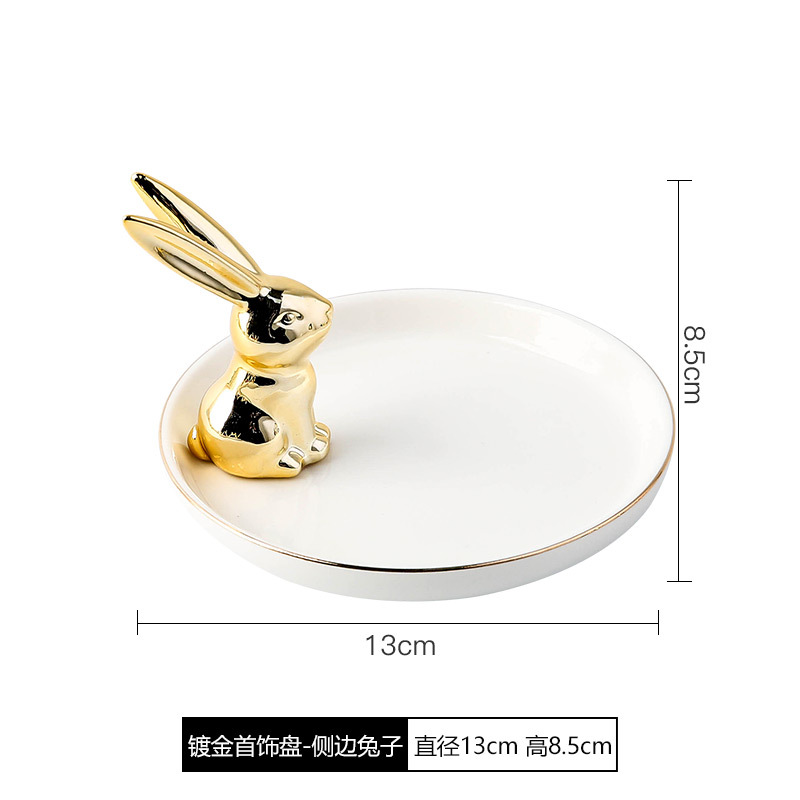 토끼 보석 접시 화장대 보관 플레이트 세라믹 공예 장식품 링 트레이 북유럽 골드 도금 선물