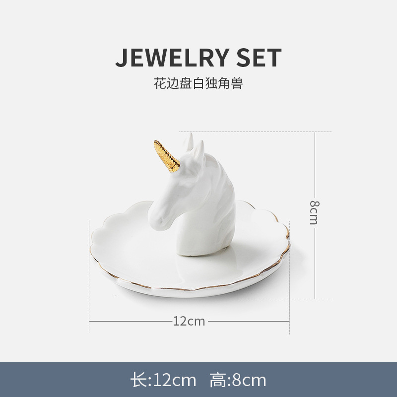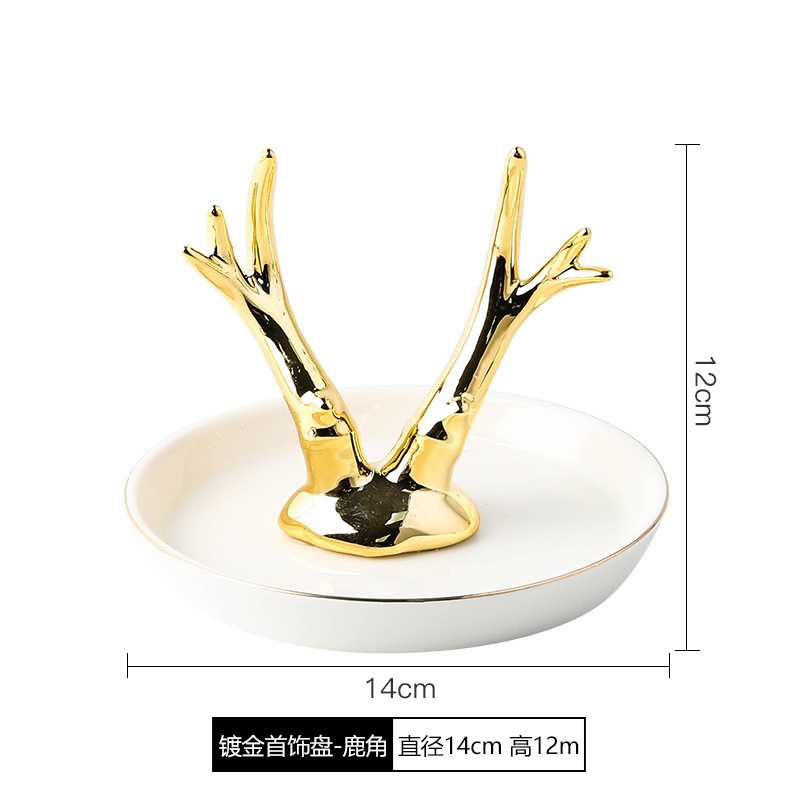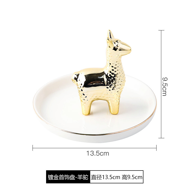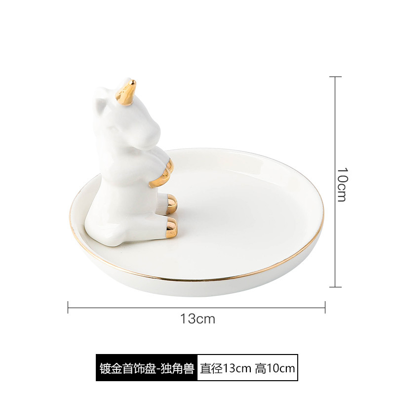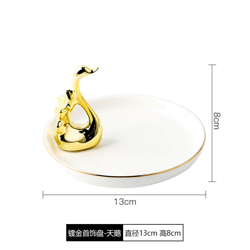 토끼 보석 접시 화장대 보관 플레이트 세라믹 공예 장식품 링 트레이 북유럽 골드 도금 선물