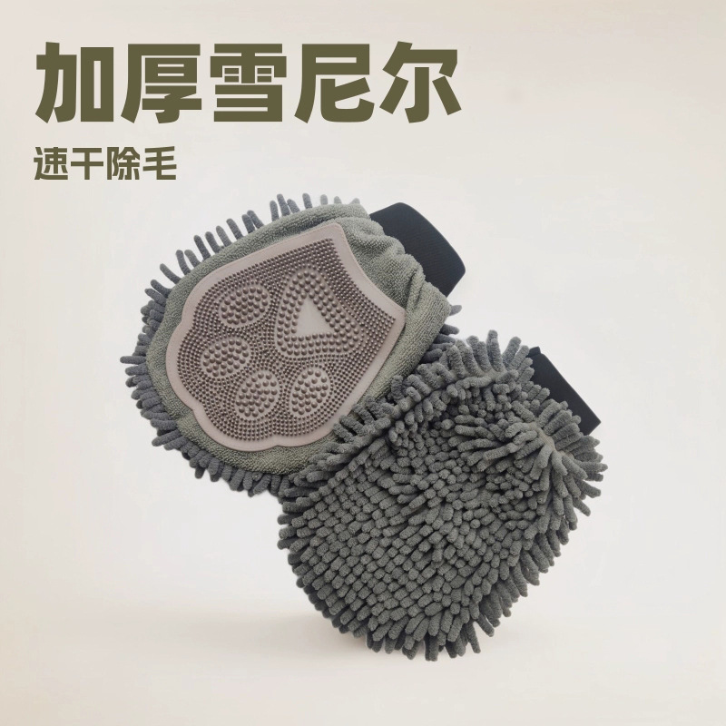 애완 동물 청소 장갑 두꺼운 체닐 실리콘 애완 동물 헤어 장갑 다기능 머리 제거 브러쉬