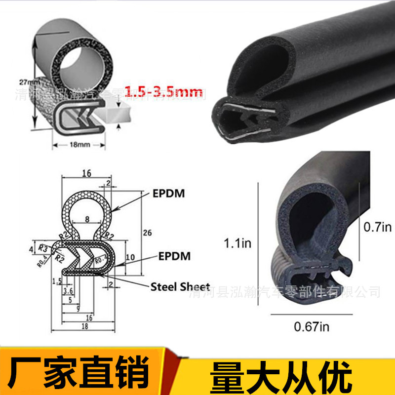 도매용 스틸 벨트 차문 씰링 스트립, 범용 중간 도어 캐비닛 운전실 3중 복합 고무 스트립스토어 가기