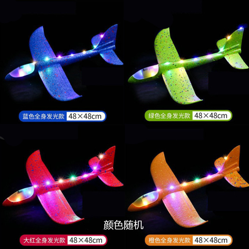 48cm 대형 led 가벼운 손으로 발광 거품 비행기 글라이더 스윙 스턴트 어린이 비행기 모델 장난감스토어 가기