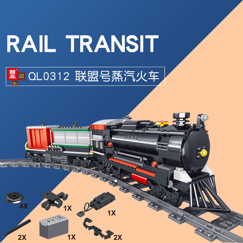 • Zhegao QL0312-Union 호스팀 증기 기관차(전체 원형 트랙 포함)(정적 버전) +0316 동력 강화 세트