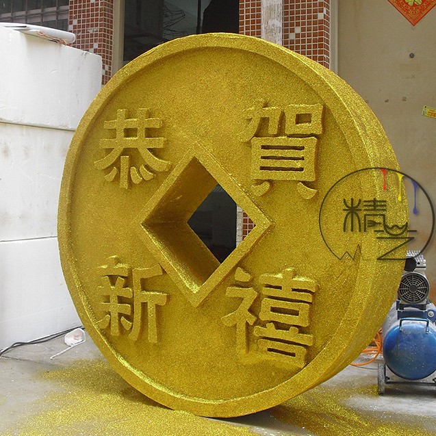 슈퍼 대형 시뮬레이션 금괴 구리 동전 모델 거품 FRP 금 조각 큰 활동 행운의 장식 소품