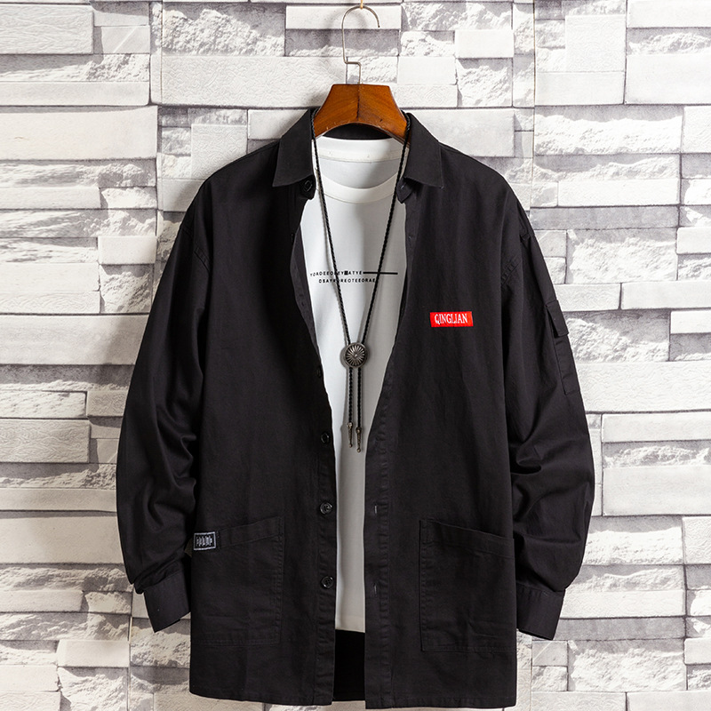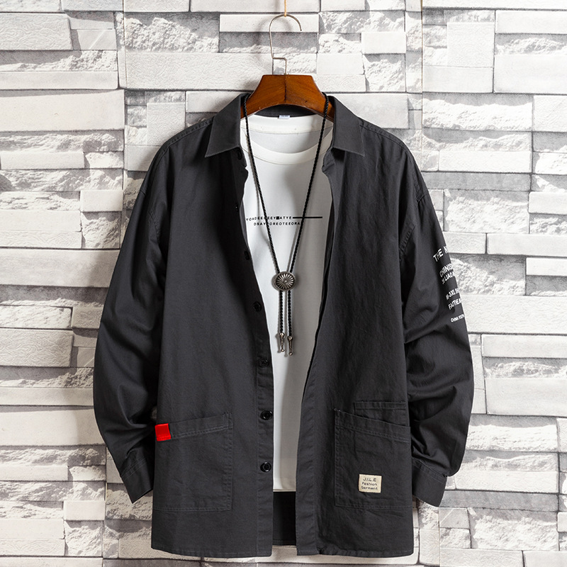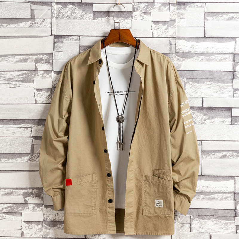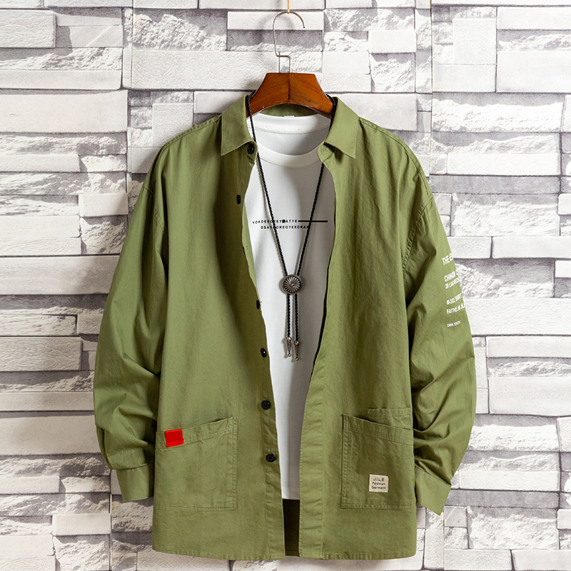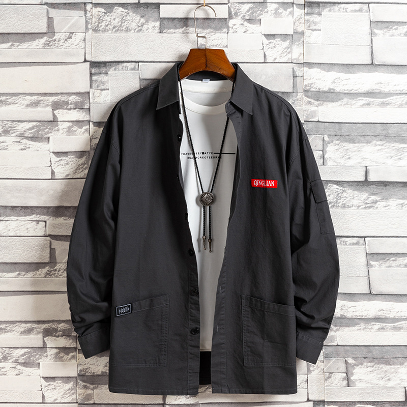 가을 신상 순면 패션 프린트 긴팔 셔츠 남성 루즈핏 빅사이즈 셔츠 청년 트렌드 학생 얇은 작업복