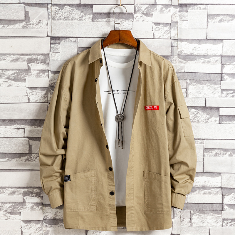 가을 신상 순면 패션 프린트 긴팔 셔츠 남성 루즈핏 빅사이즈 셔츠 청년 트렌드 학생 얇은 작업복스토어 가기