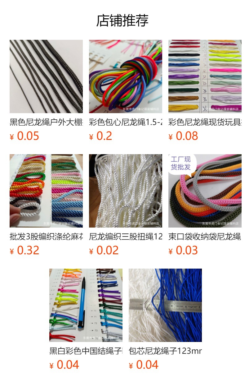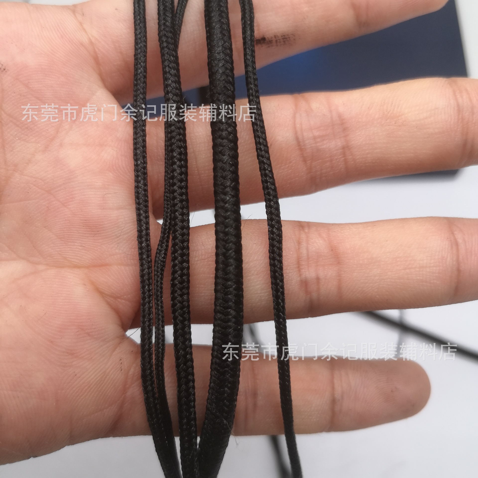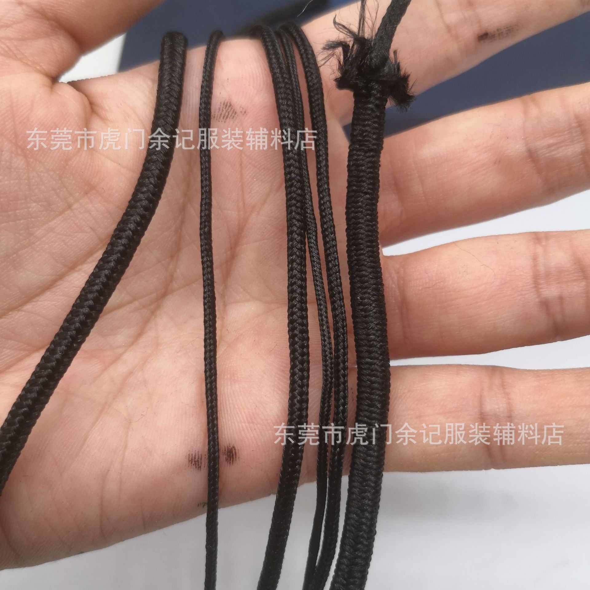 검은 나일론 로프 라운드 코어 방적 폴리 에스터 당김 로프 가방 액세서리 제조 업체 도매 야외 바인딩 로프스토어 가기