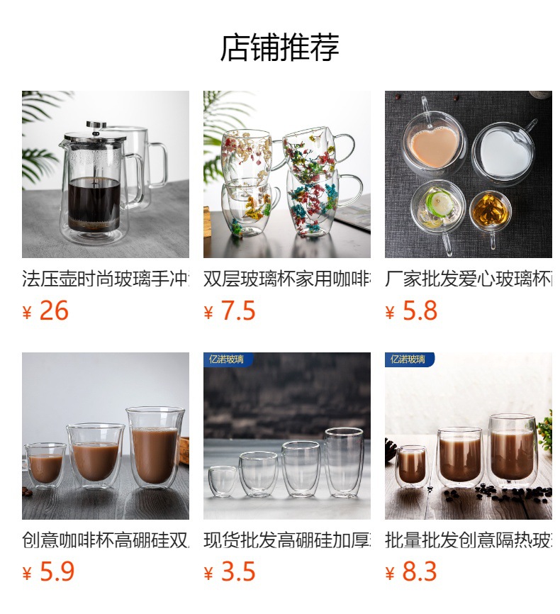 고붕규산 유리컵 이중 단열 고온 저항 투명 유리 물컵 가정용 우유 커피컵 도매스토어 가기