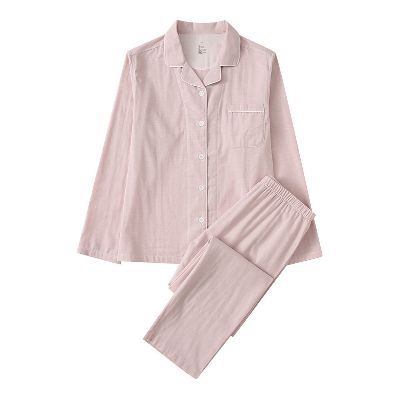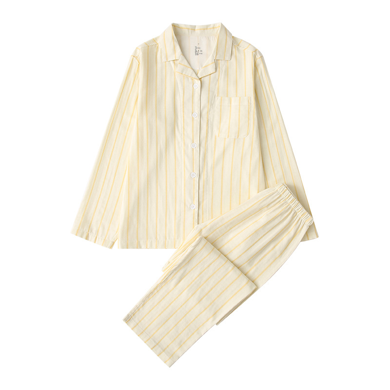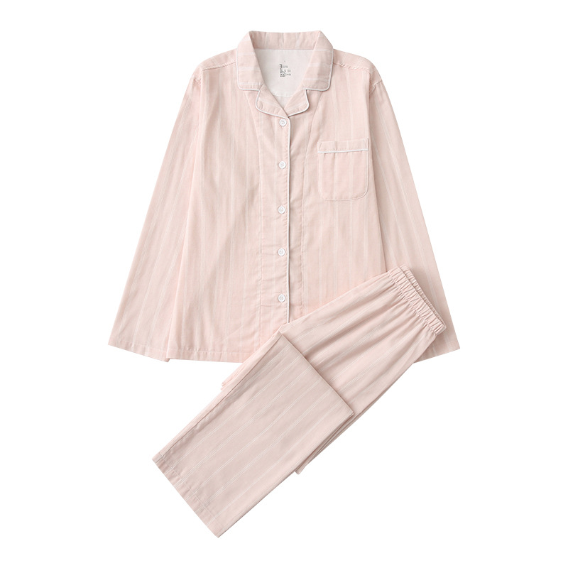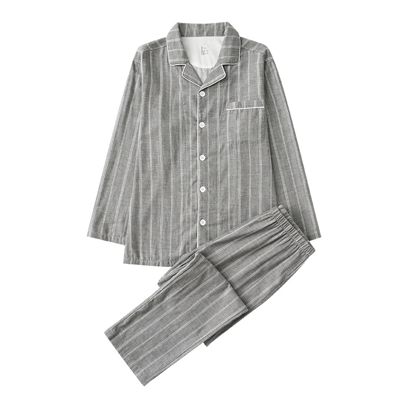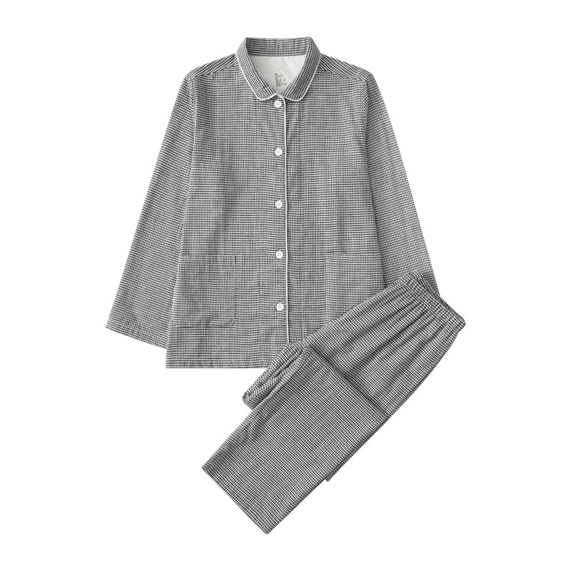 홈웨어 이중 거즈 커플 잠옷 순면 남성용 여성용 긴팔 심플 체크무늬 순면 세트 외출복으로도 가능