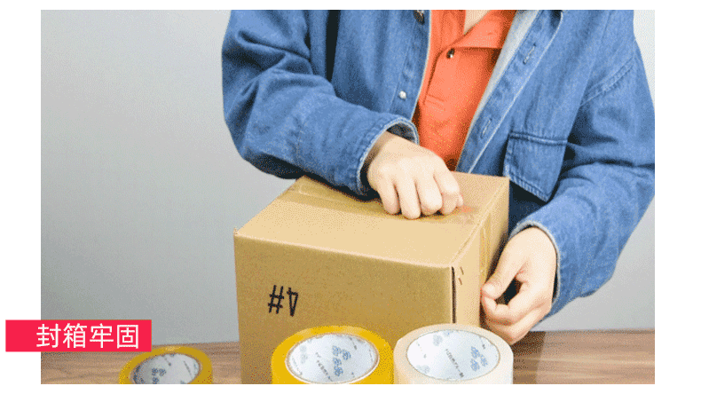 • 노란색 바탕에 빨간색 글씨 [폭 45 두께 1.6 길이 100] 풀박스 10/50/100롤