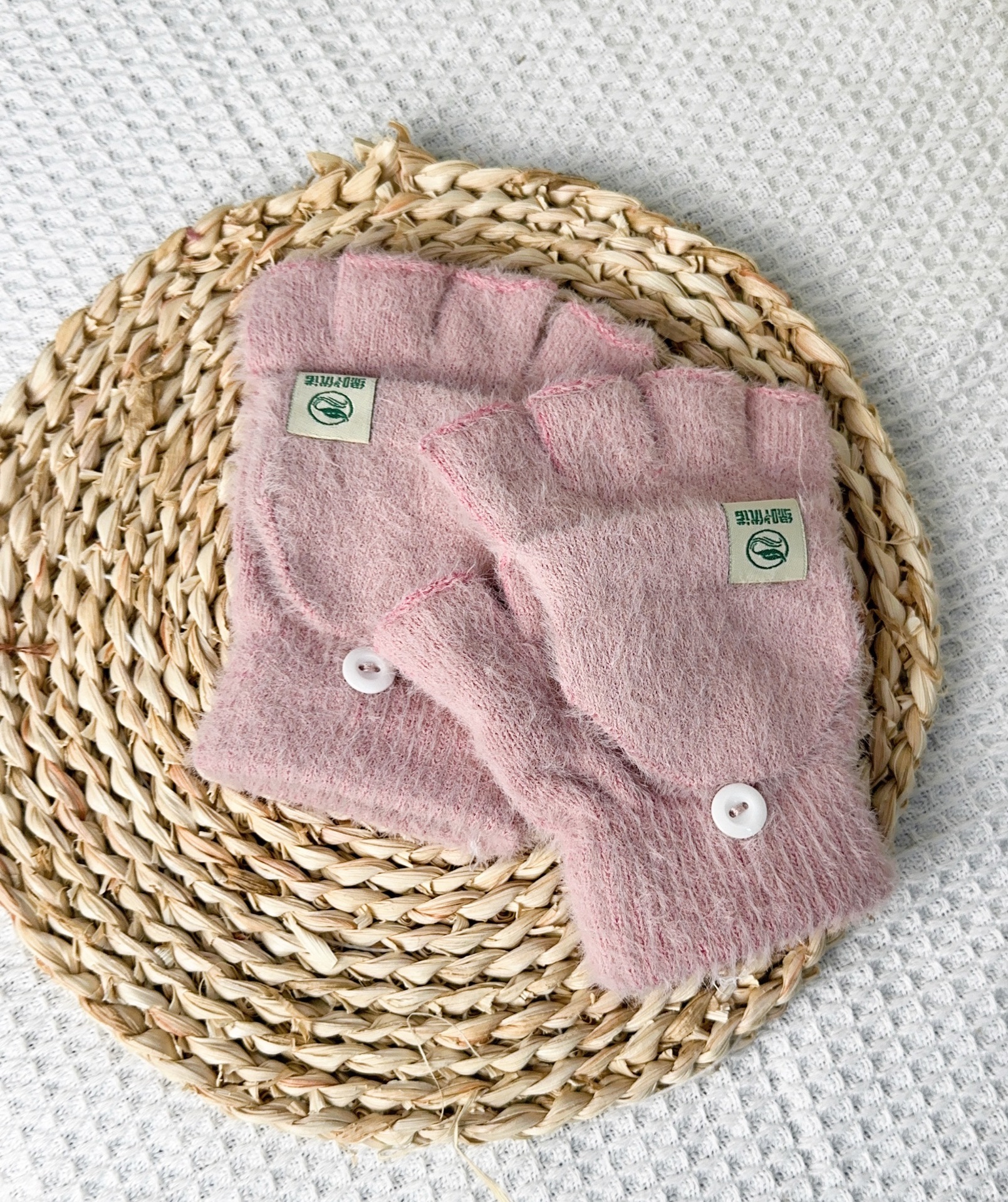봉제 장갑 여성용 겨울 따뜻한 학생의 손가락 노출 플립 커버 장갑 야외 장갑 두꺼운 방한 사이버 축하 폭발