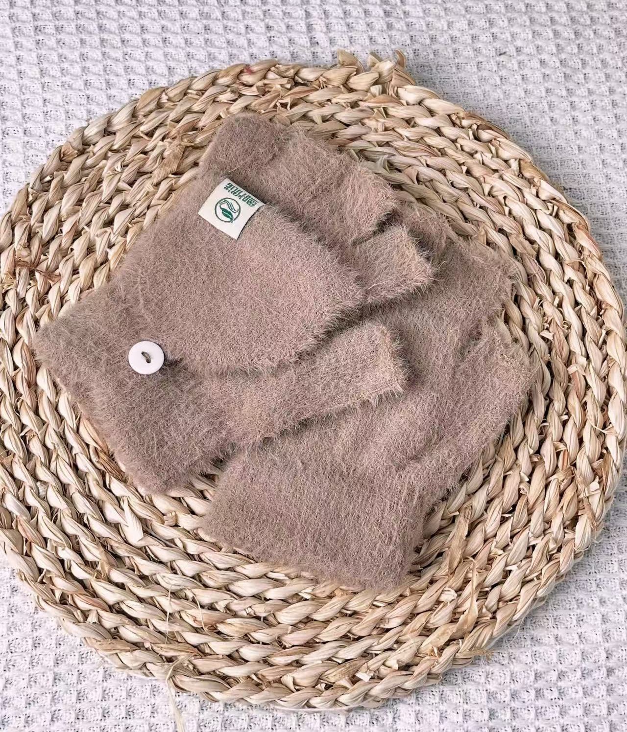 봉제 장갑 여성용 겨울 따뜻한 학생의 손가락 노출 플립 커버 장갑 야외 장갑 두꺼운 방한 사이버 축하 폭발스토어 가기